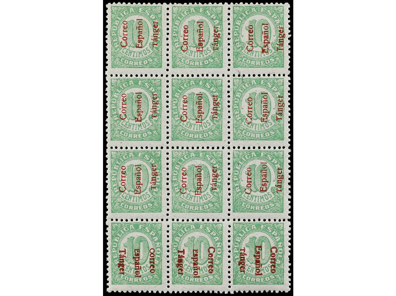 COLONIAS ESPAÑOLAS: TANGER. 5, 10, 15 y 20 cts. Bloques de 12 con las variedades 96/9hvhi (3) y 96/9hea. Ed.96/9(12). Cat. +680€. (Image1) (Image2)