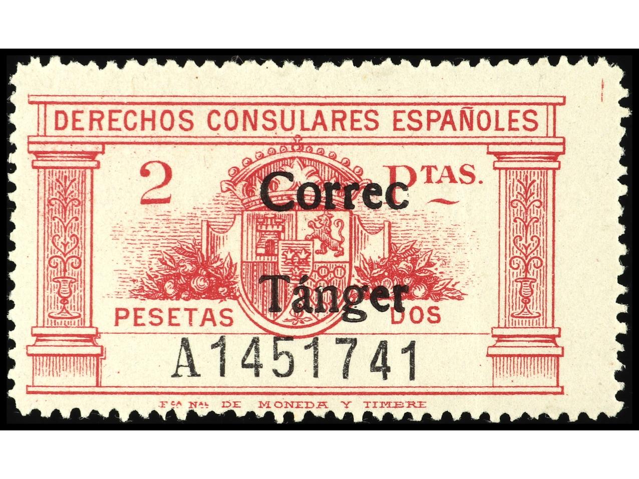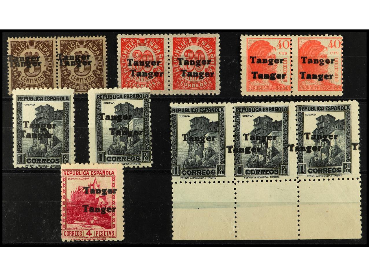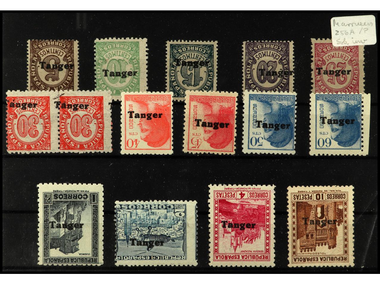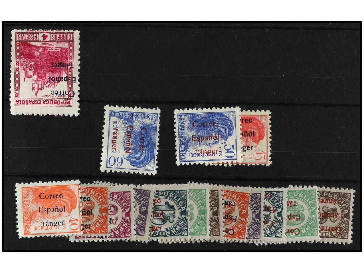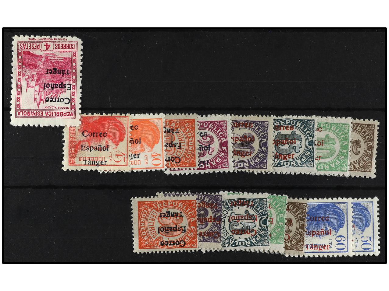COLONIAS ESPAÑOLAS: TANGER. SERIE COMPLETA, 16 valores a falta del 2 pts. incluyendo 5 con habilitación invertida. Todos variedad ´Correc´. Ed.96/105 y 107.