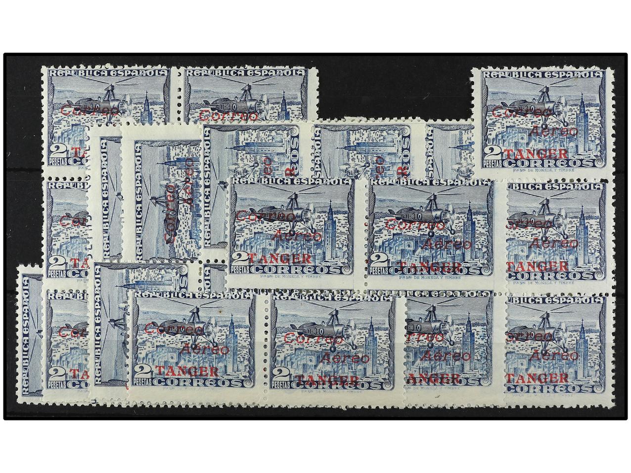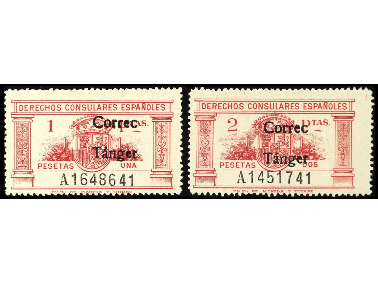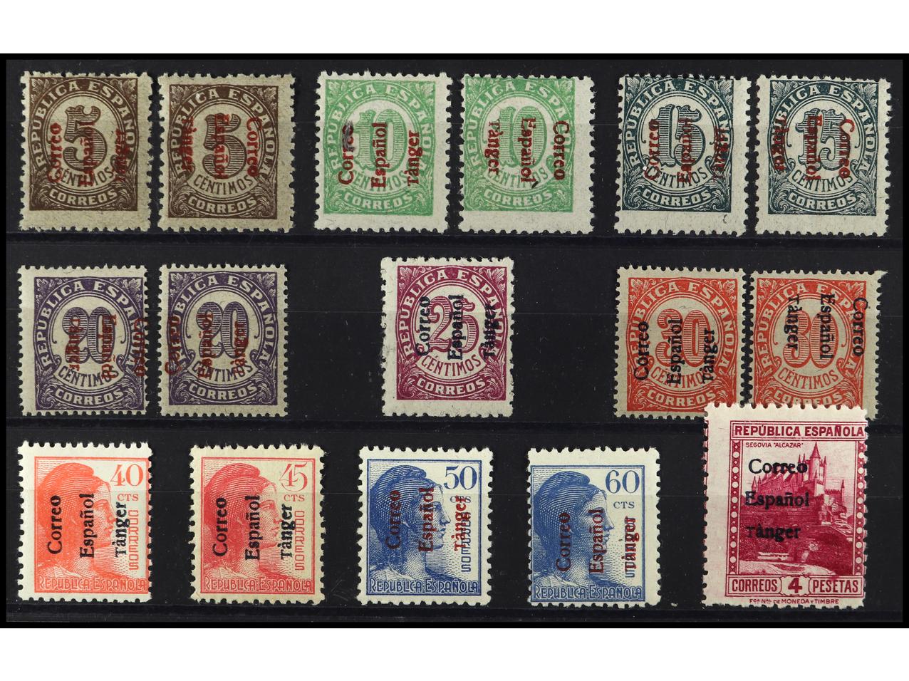 COLONIAS ESPAÑOLAS: TANGER. SERIE COMPLETA a falta del 2 pts. 16 valores incluyendo 5 con habilitación invertida. Todas variedades ´Correo´. Ed.96/105 y 107.