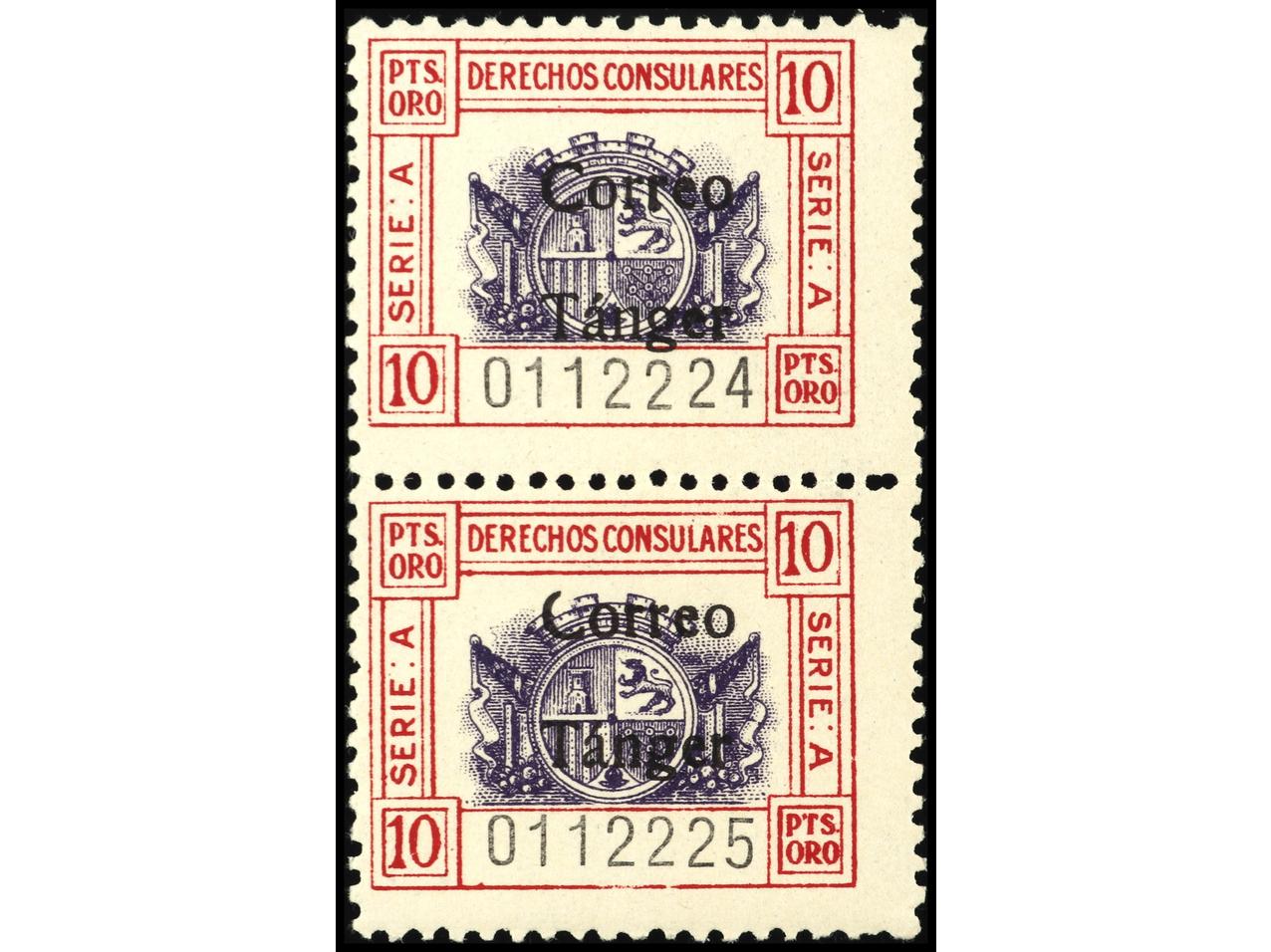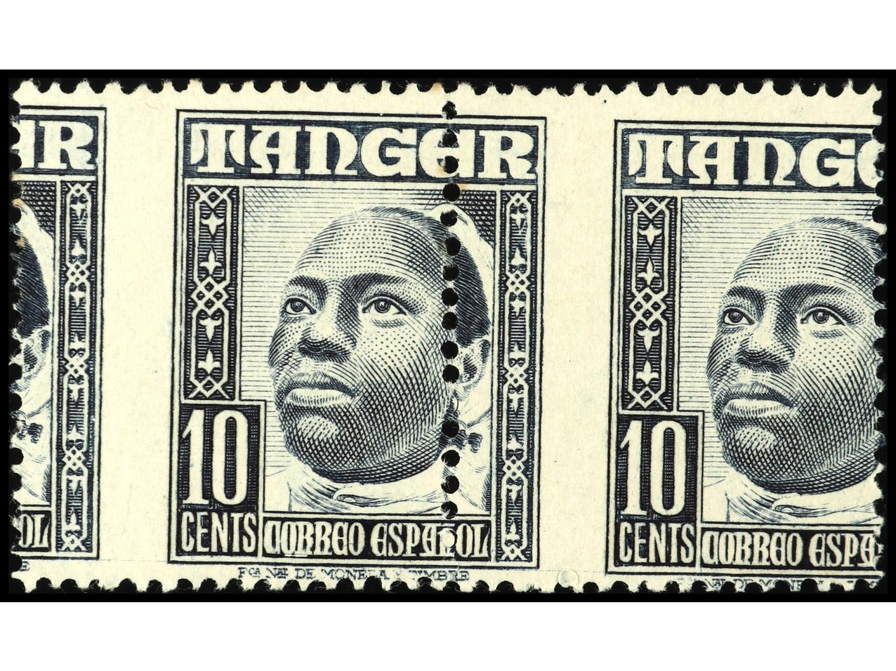 COLONIAS ESPAÑOLAS: TANGER. 10 cts. en pareja horizontal CON DENTADO VERTICAL MUY DESPLAZADO. PRECIOSA. RARA. Ed.154dh(2). (Image1)