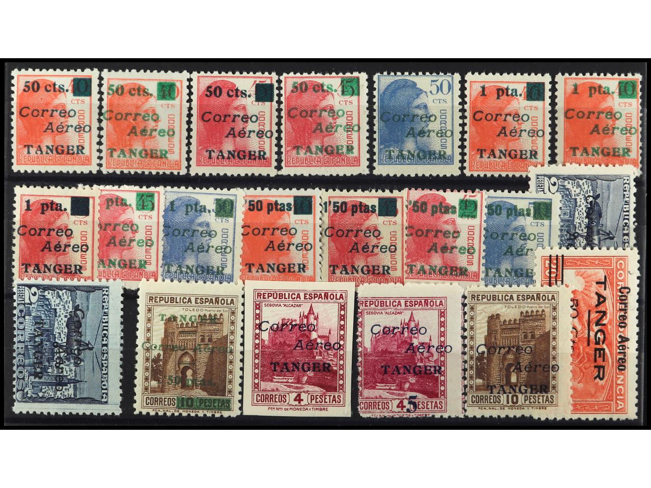 COLONIAS ESPAÑOLAS: TANGER. Serie a falta del NE21. Incluye algunos valores con sobrecarga de diferente tonalidad. Total 21 sellos. OCASIÓN. A EXAMINAR. Ed.NE10/25. Cat. 320€. (Image1)