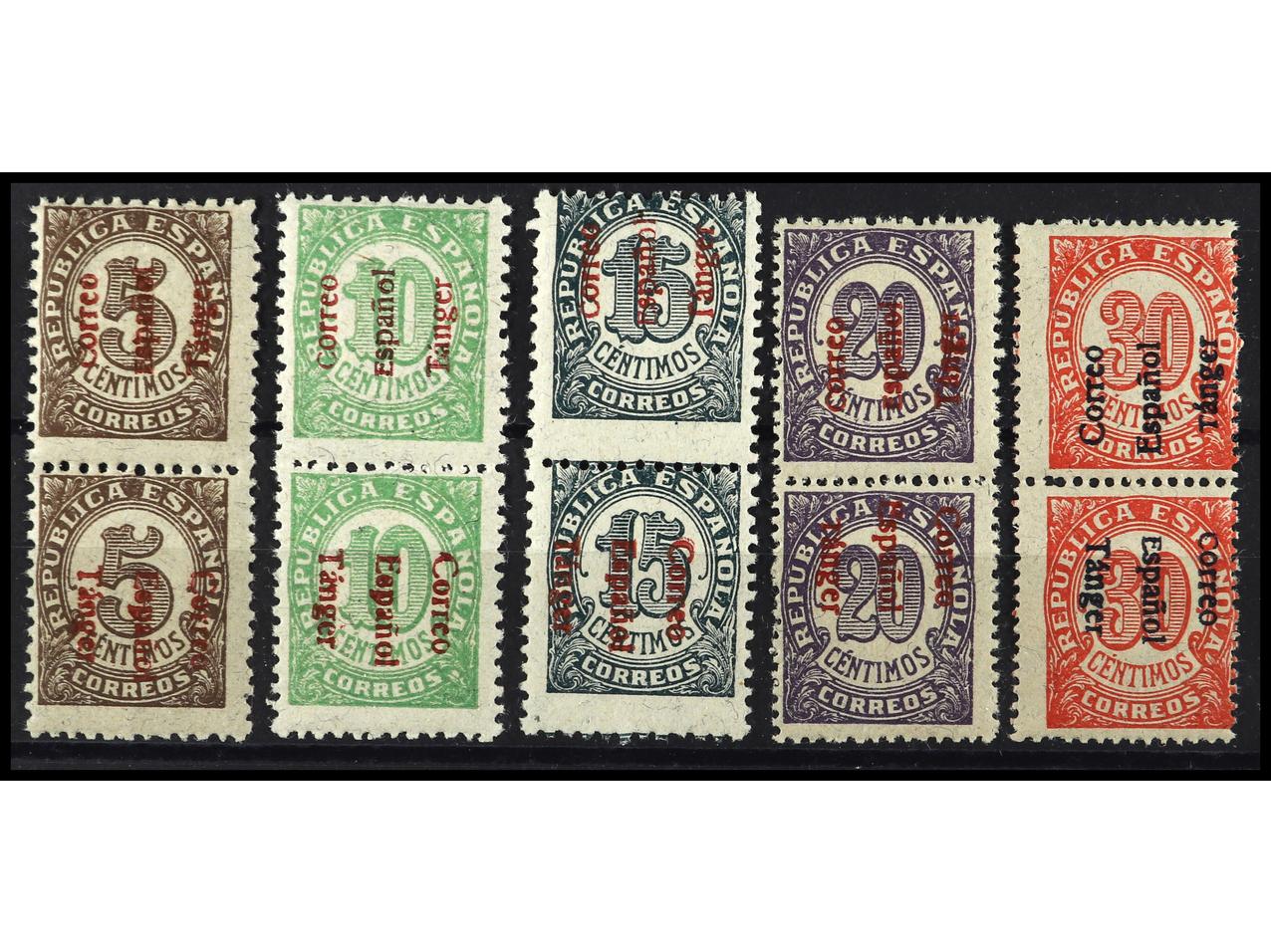 COLONIAS ESPAÑOLAS: TANGER. SERIE COMPLETA en pareja vertical, una HAB. INVERTIDA (5 valores). BONITA. Ed.96hvhi/101hvhi. Cat. 193€. (Image1) (Image2)