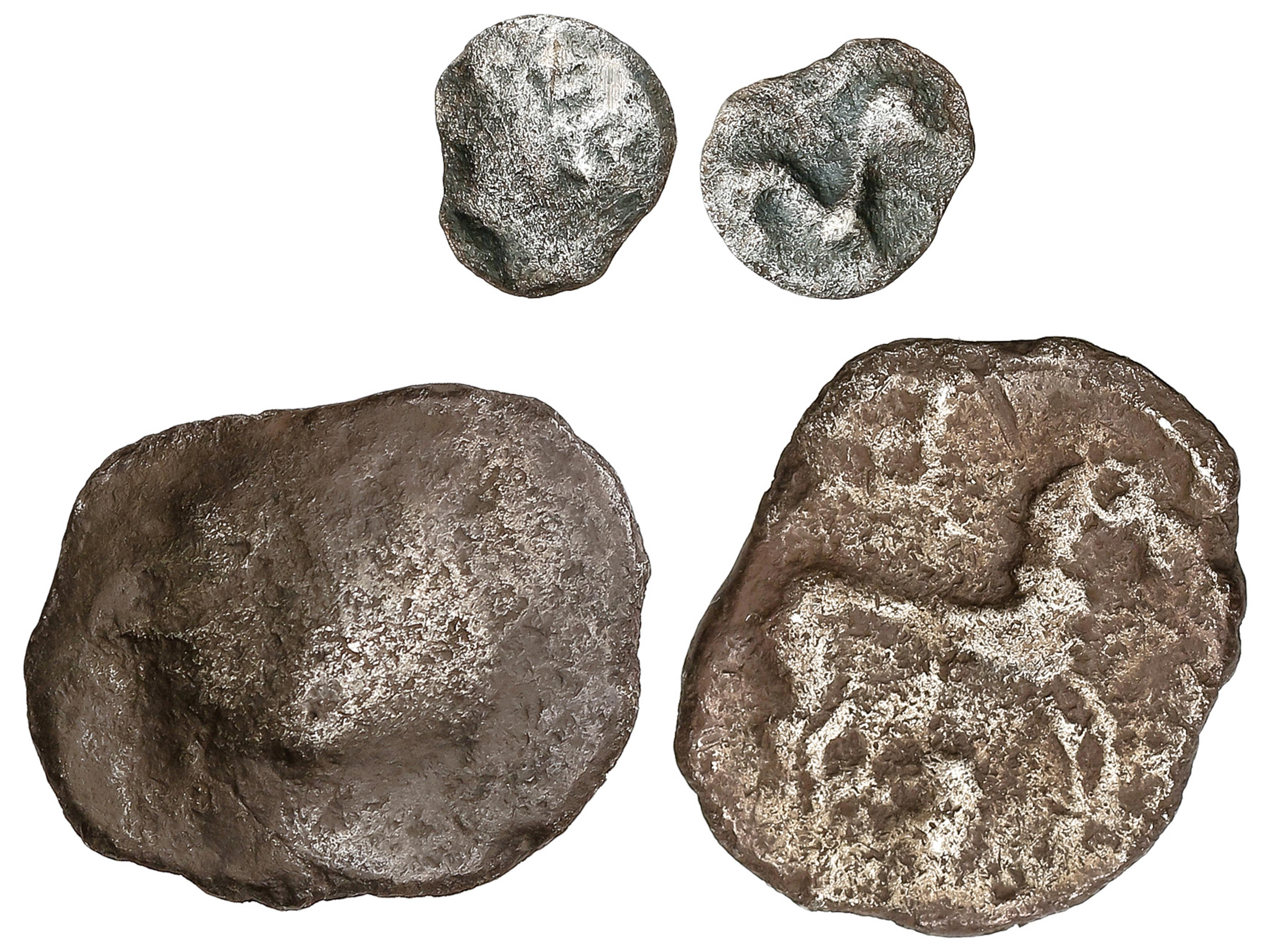 3 imageLote 2 monedas óbolo y Dracma. Siglo III a.C. EMPORITON. IMITACIONES GALAS. 3,42 y 0,29 grs. AR. Dracma: Cabeza femenina a izquierda y reverso caballo a derecha, debajo bota Acip-252 y óbolo: Cabeza femenina a izquierda y reverso caballo a izquierda Acip-279. BC a BC+. (Image1)