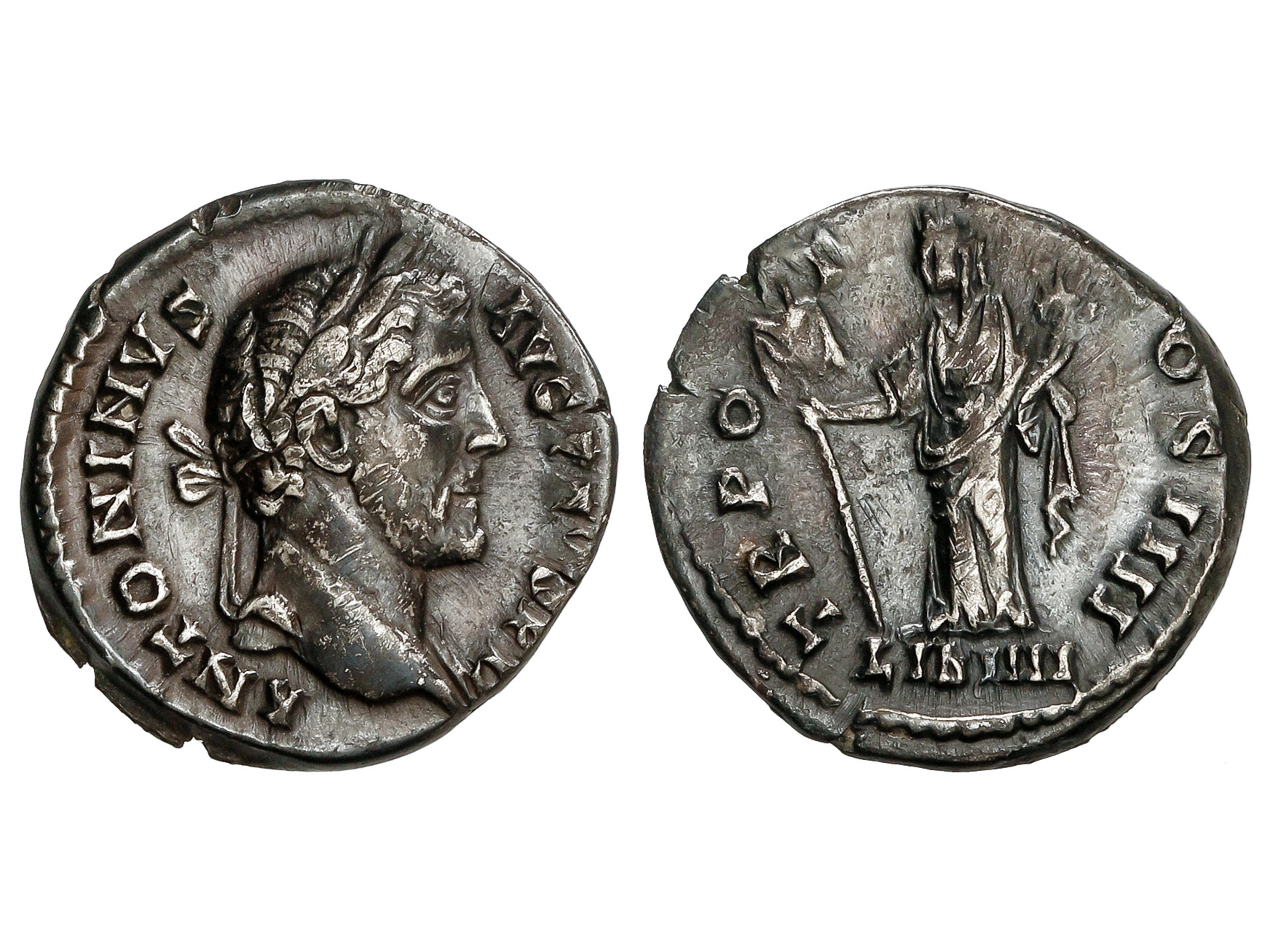 12 imageDenario. 145-161 d.C. ANTONINO PÍO. Anv.: ANTONINVS AVG. PIVS P. P. Cabeza laureada a derecha. Rev.: TR. POT. COS. IIII. Liberalidad en pie a izquierda con ábaco y cornucopia. En exergo: LIB IIII. 3,30 grs. AR. Pátina oscura. C-490; RIC-156. MBC+. (Image1)