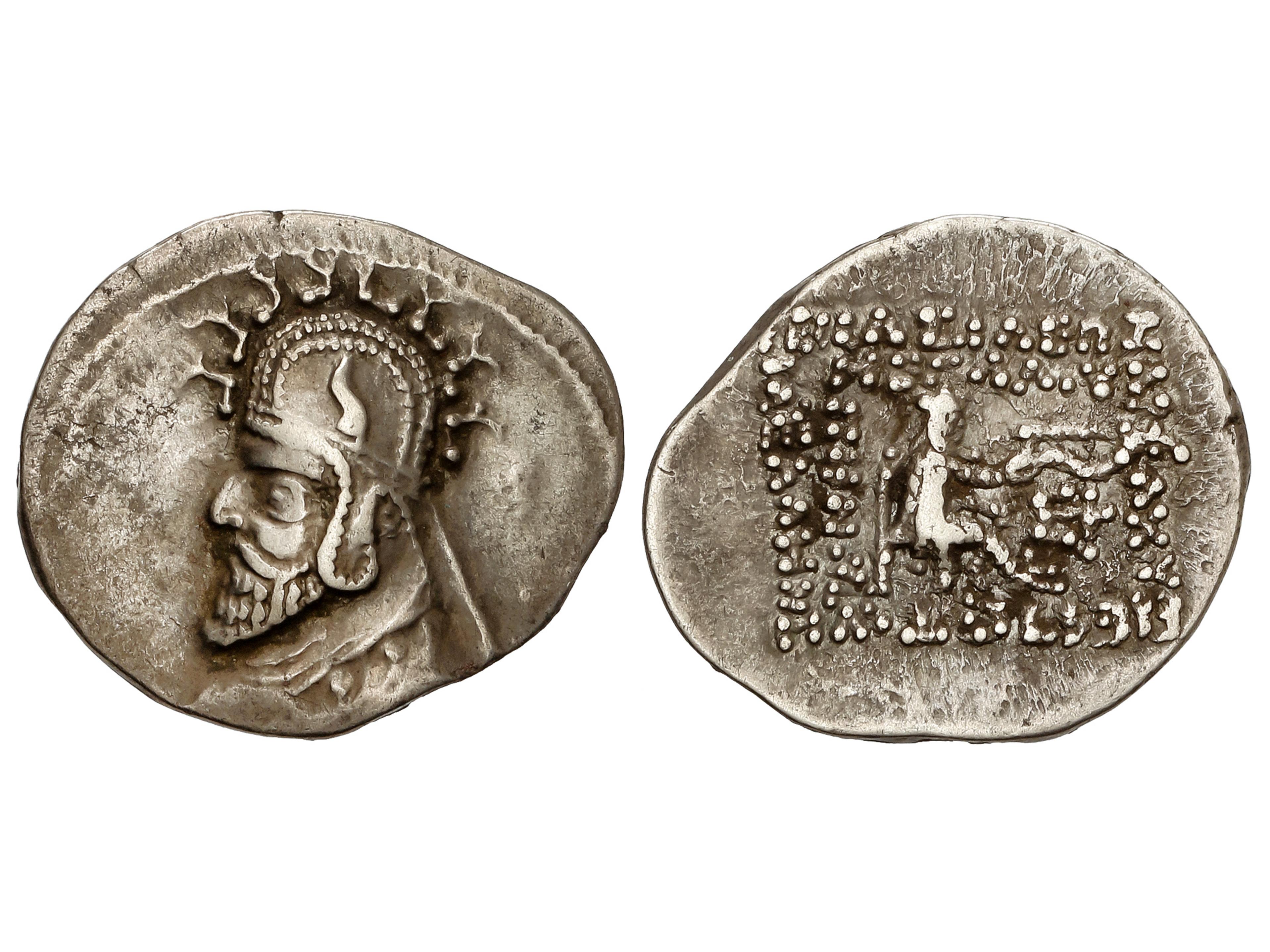 2 imageDracma. PHRAATES III. PARTIA. Anv.: Busto barbado a izquierda. Rev.: Rey entronizado a derecha con arco, alrededor leyenda. 4,05 grs. AR. Se-7403 sim. MBC+. (Image1)