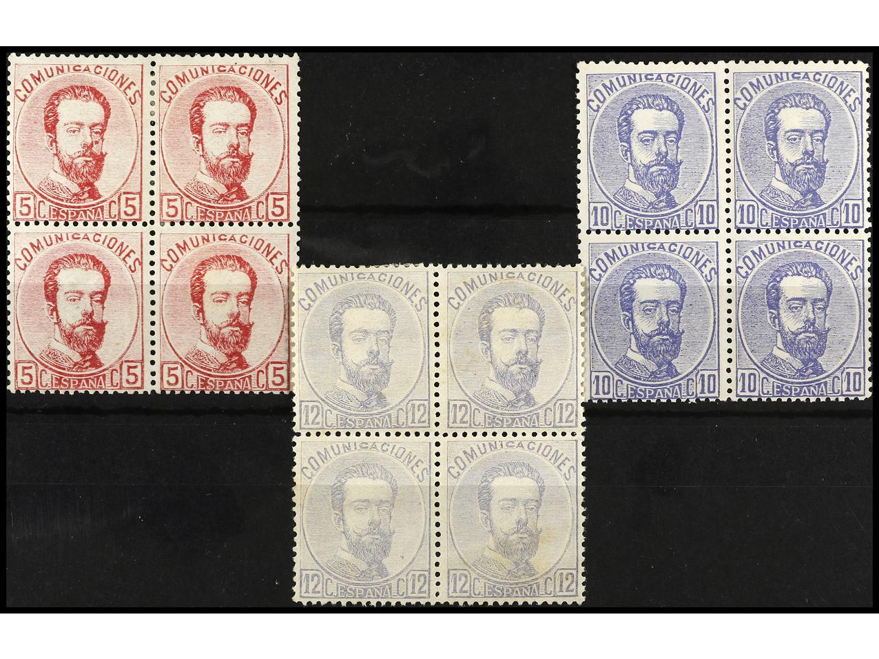 ESPAÑA. CONJUNTO de sellos en bloques de cuatro. Ed.118, 121A, 122. (Image1)