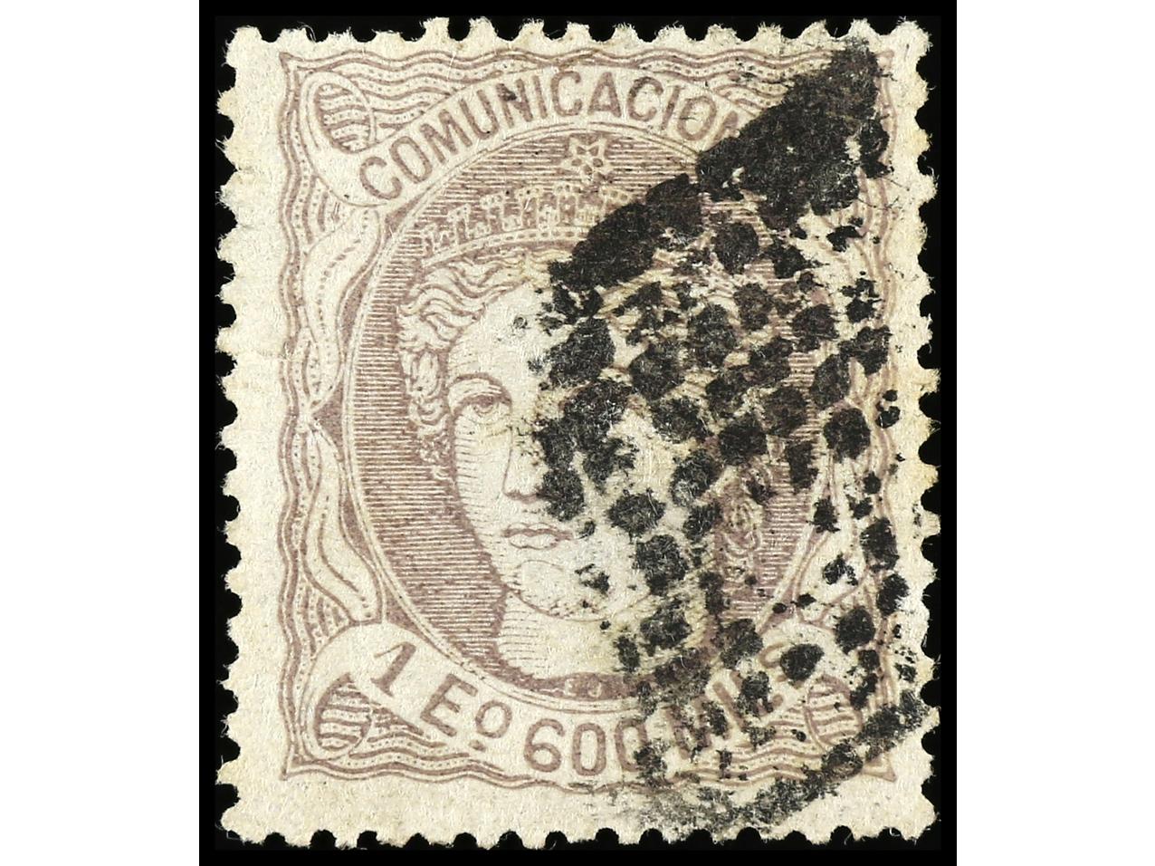 ESPAÑA. 1 esc. 600 mils violeta. Bien centrado y color intenso. Leve corte margen izquierdo. Ed.111. Cat. 900€. (Image1)