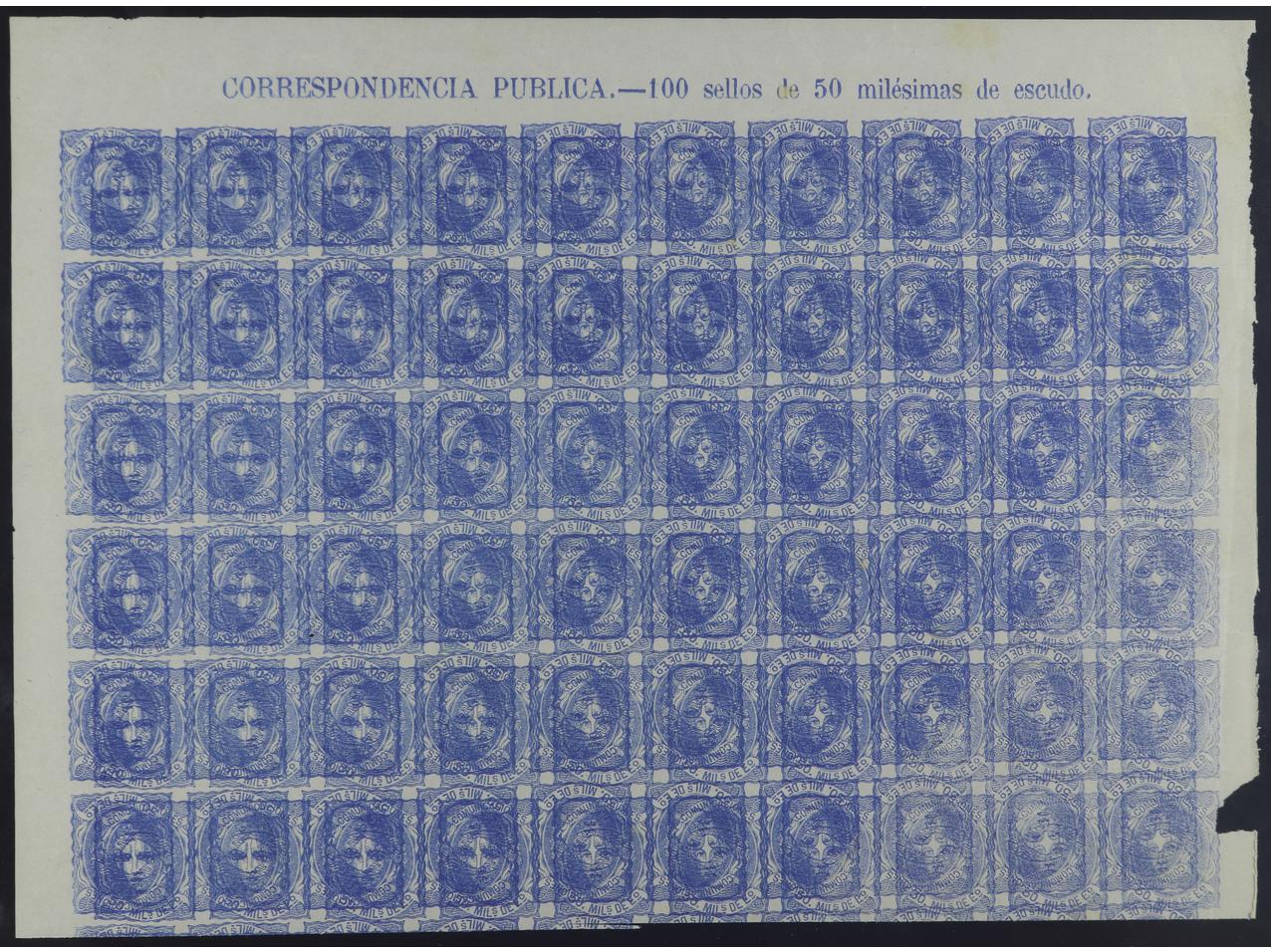 ESPAÑA. 50 mils. Bloque de 60 sellos (parte superior de pliego con leyenda) con DOBLE IMPRESIÓN, UNA INVERTIDA. PRECIOSO. RARO. Ed.107P(60). (Image1)