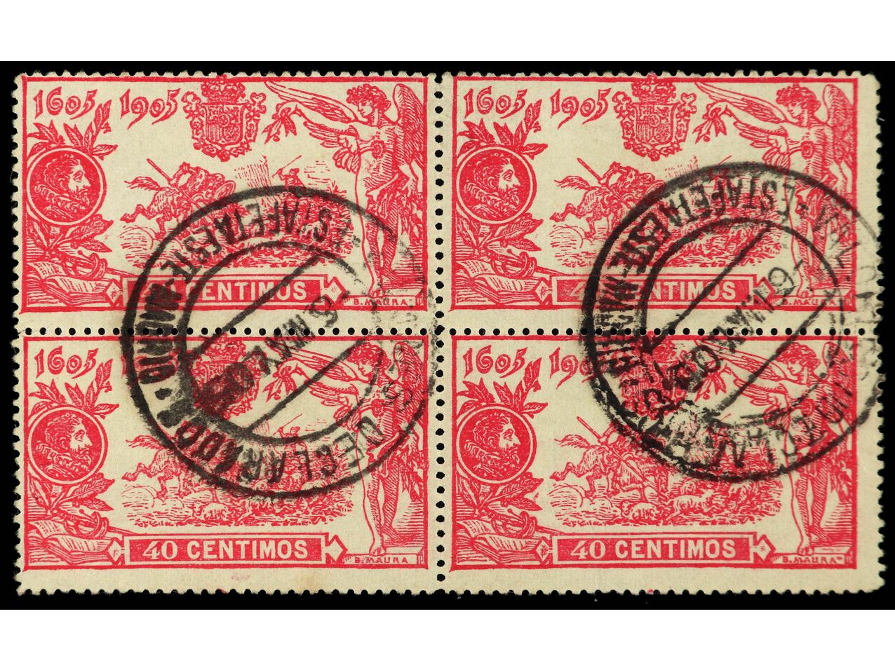 ESPAÑA. 40 cts. rosa en bloque de 4 con Mat. VALORES DECLARADOS. BONITO. Ed.262(4). Cat. 204€. (Image1)