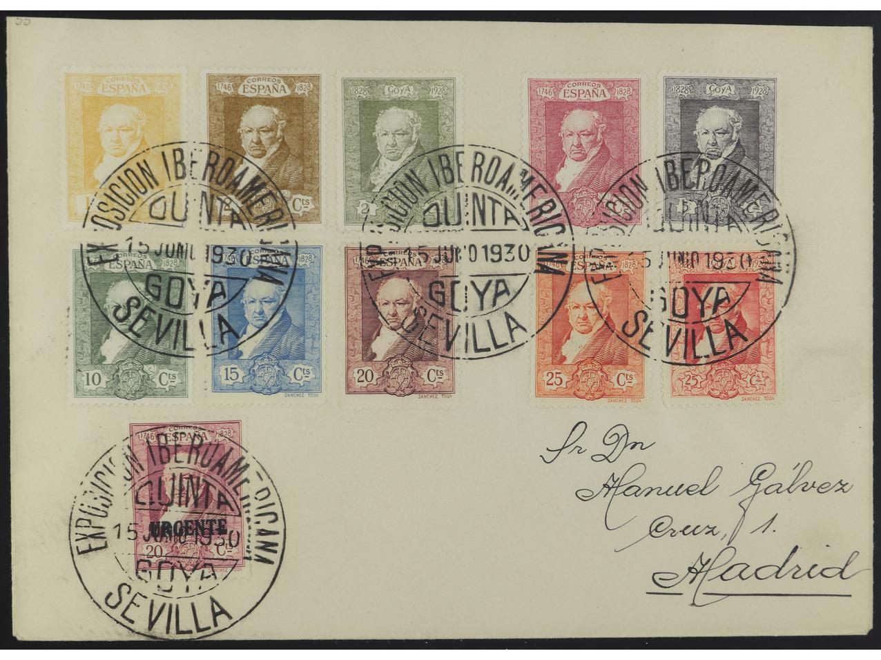 ESPAÑA. SERIE COMPLETA en carta de SEVILLA (16 Jun. 1930) a MADRID. PRECIOSA. RARA. Ed.517/30. (Image1)