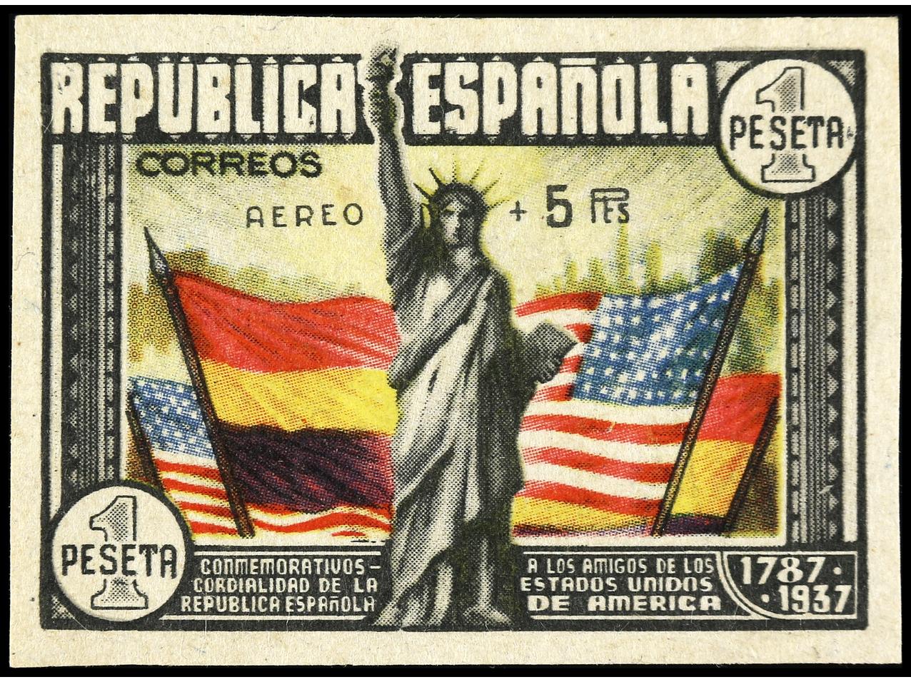 ESPAÑA. HB Aéreo + 5 pts. multicolor. Levemente tonalizado. Ed.766. Cat. 2.000€. (Image1)