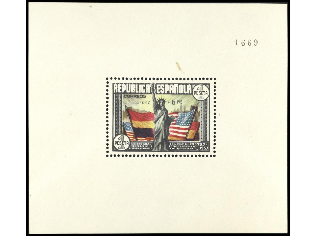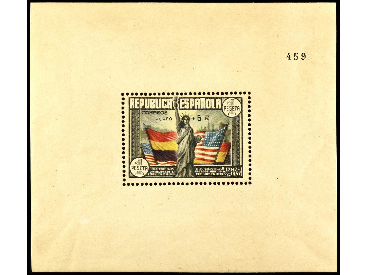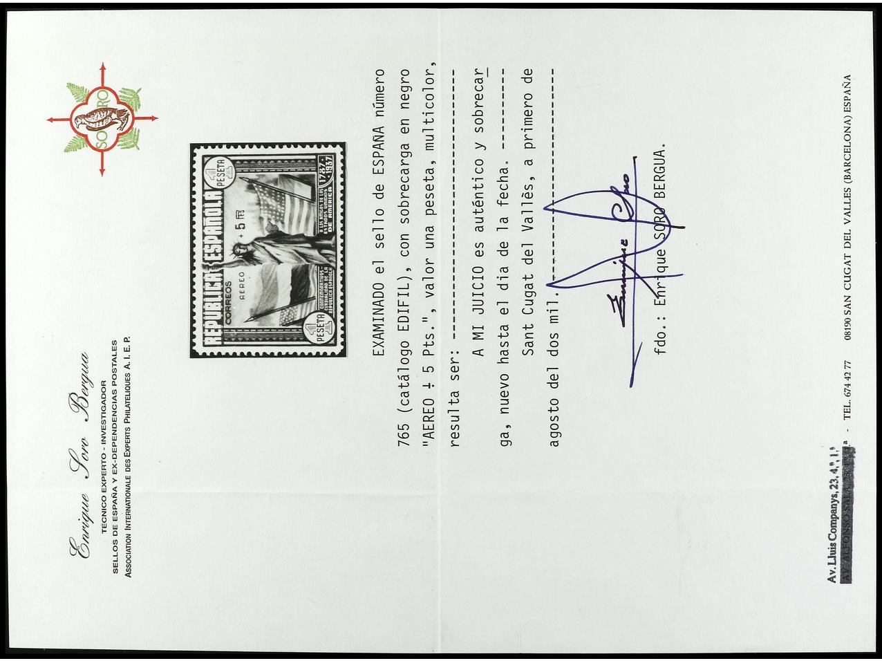 ESPAÑA. HB. Aéreo + 5 pts. 1ª tirada (Ed. 766a, tirada 500). RARA. Cert. SORO. Ed.766. Cat. 1.200€. (Image1) (Image2)