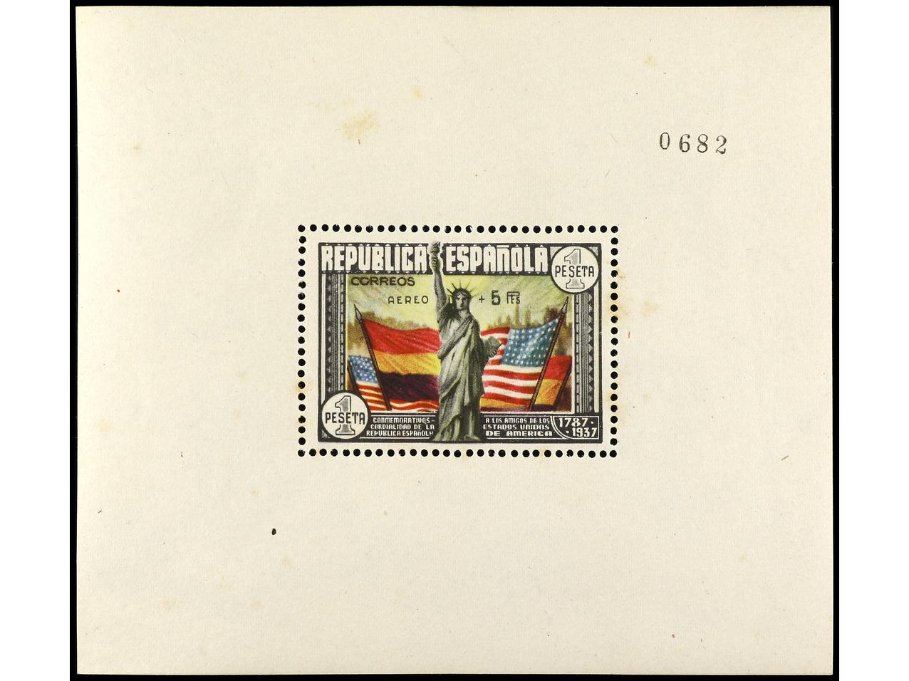 ESPAÑA. HB. Aéreo + 5 pts. multicolor. 1ª tirada (Ed. 766a, tirada 500, 1.600€). Sombras del tiempo. RARA. A EXAMINAR. Ed.766. Cat. 1.200€. (Image1)