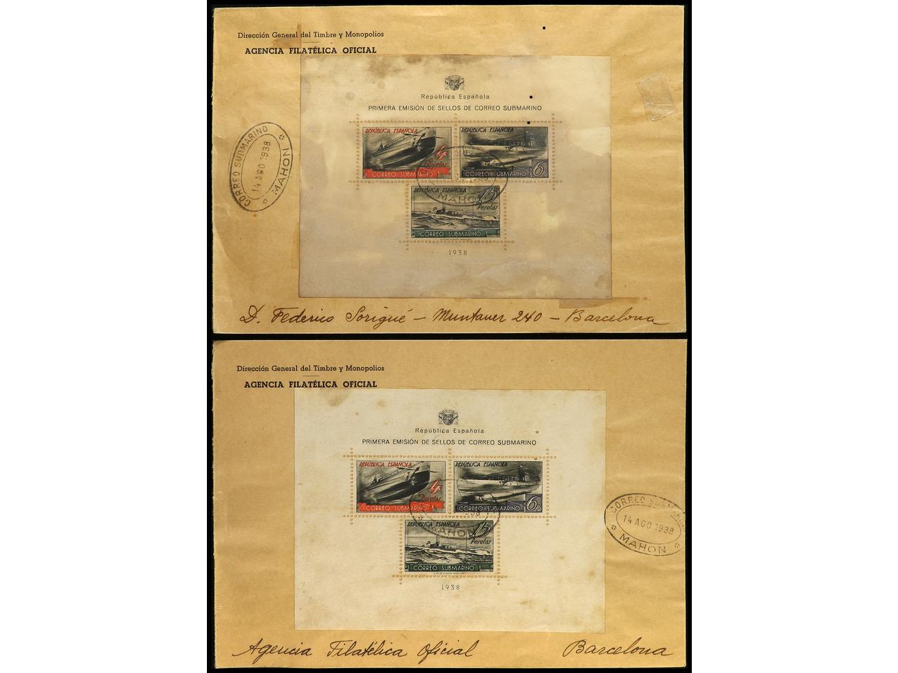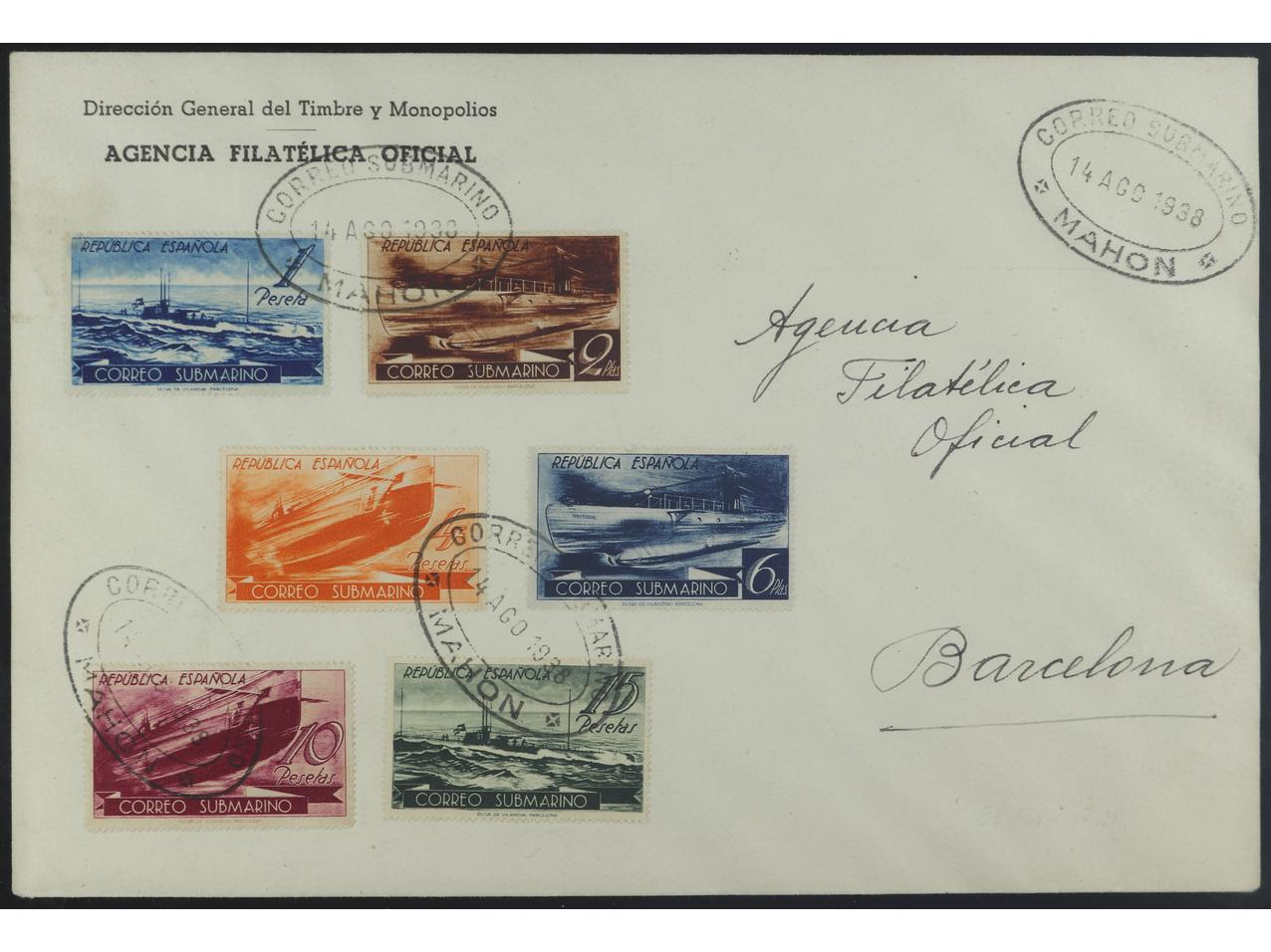 ESPAÑA. SERIE COMPLETA en carta de MAHÓN (14 Ago. 1938) a BARCELONA. LLegada al reverso. PRECIOSA. MUY RARA. Ed.775/80. (Image1)