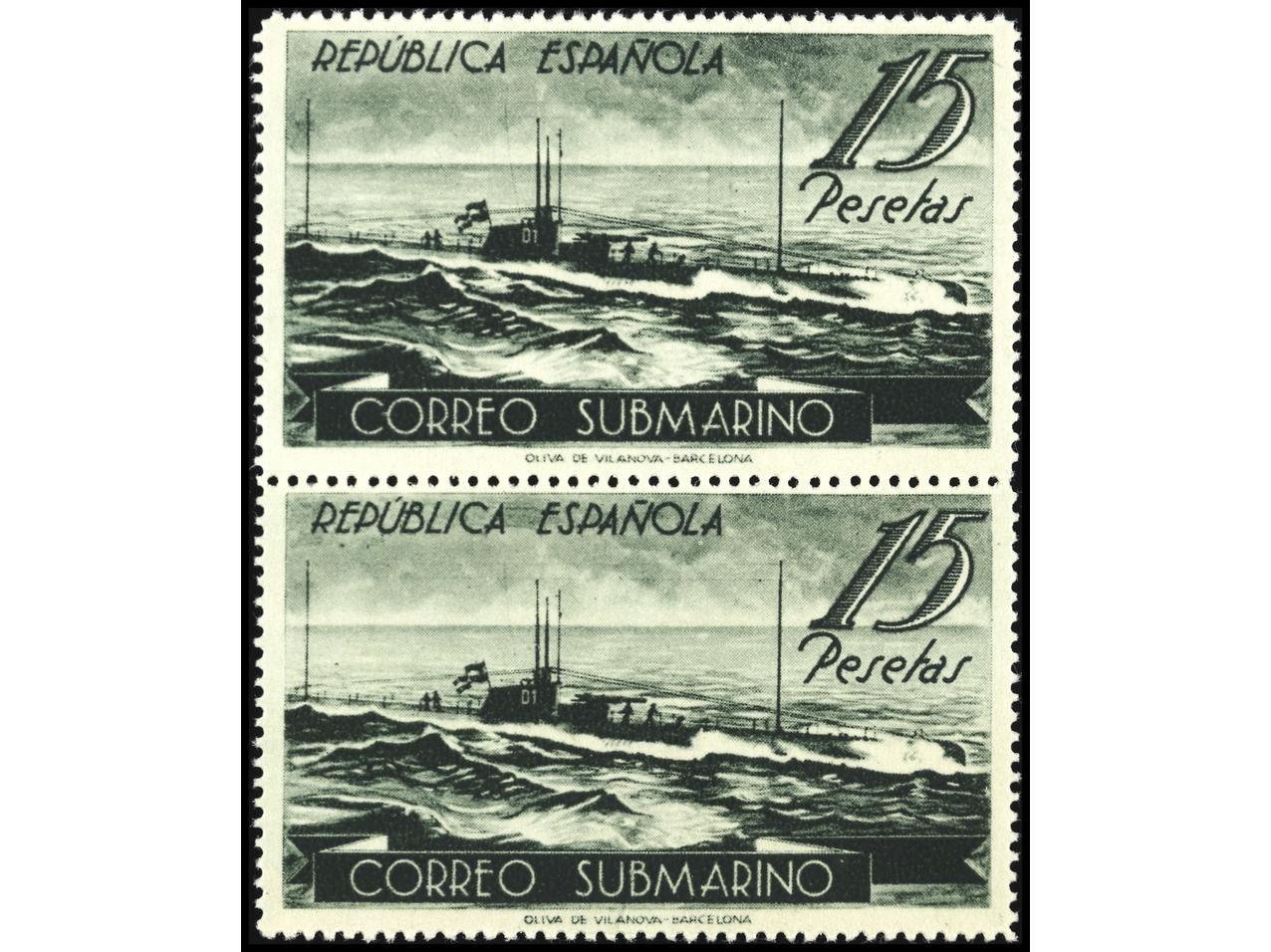 ESPAÑA. 1,25 pts. azul en pareja vertical SIN DENTADO INFERIOR. No catalogado. PRECIOSA. MUY RARA. Ed.774smz. (Image1)