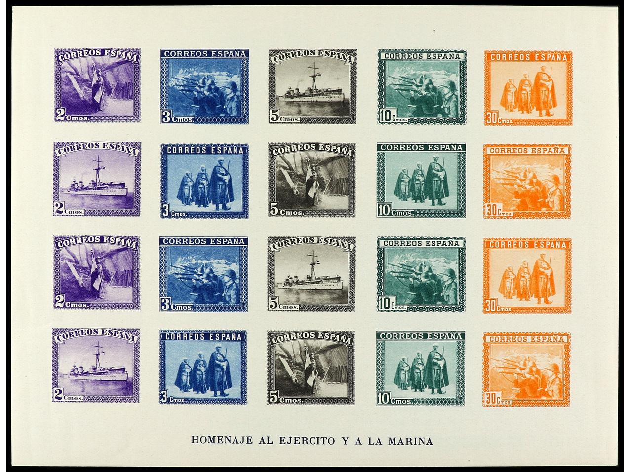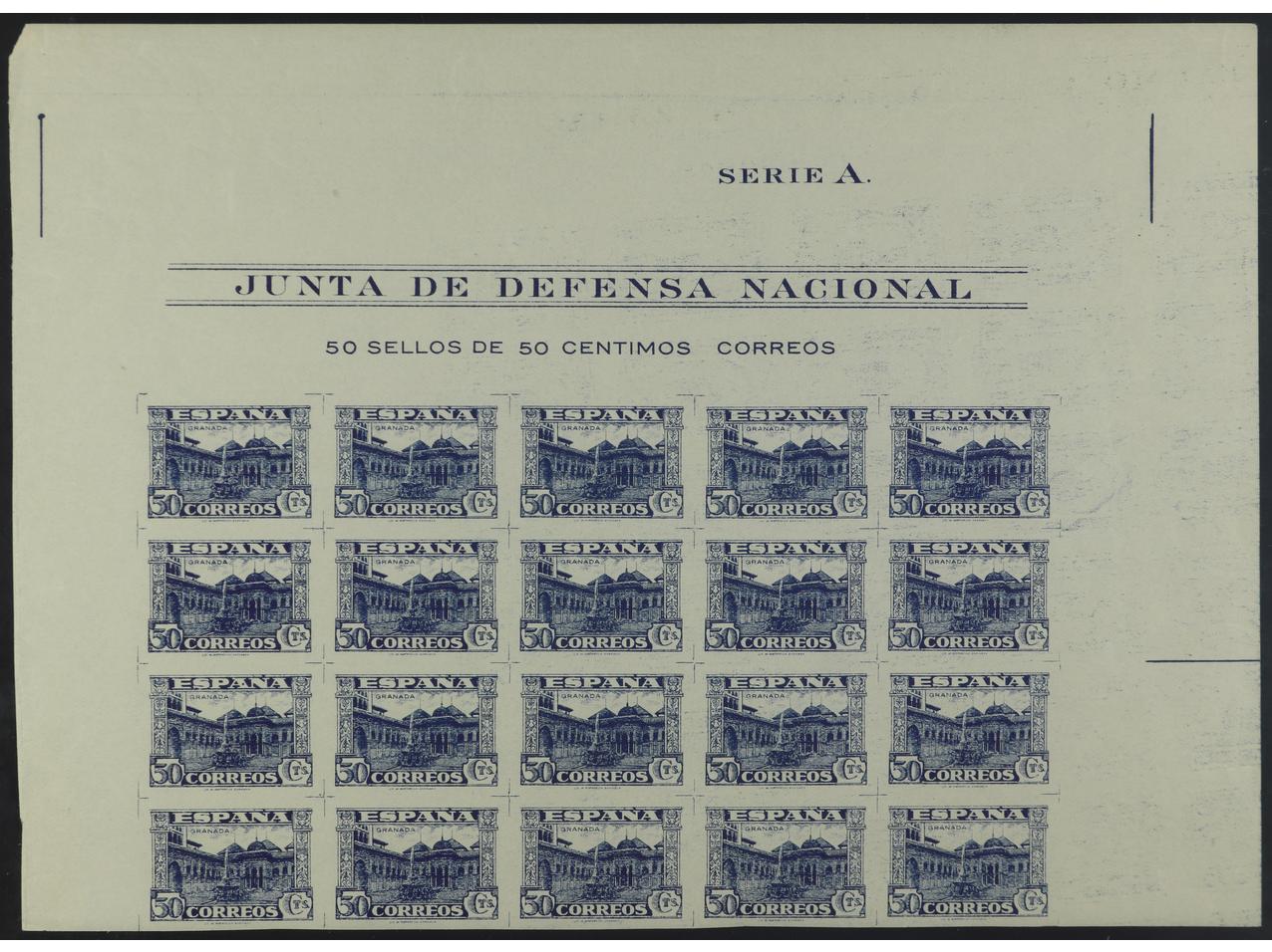 ESPAÑA. 50 cts. azul SIN DENTAR. 20 Sellos en bloque cabecera de pliego con leyenda. PRECIOSO. RARO. Ed.809s(20). Cat. 860€. (Image1)