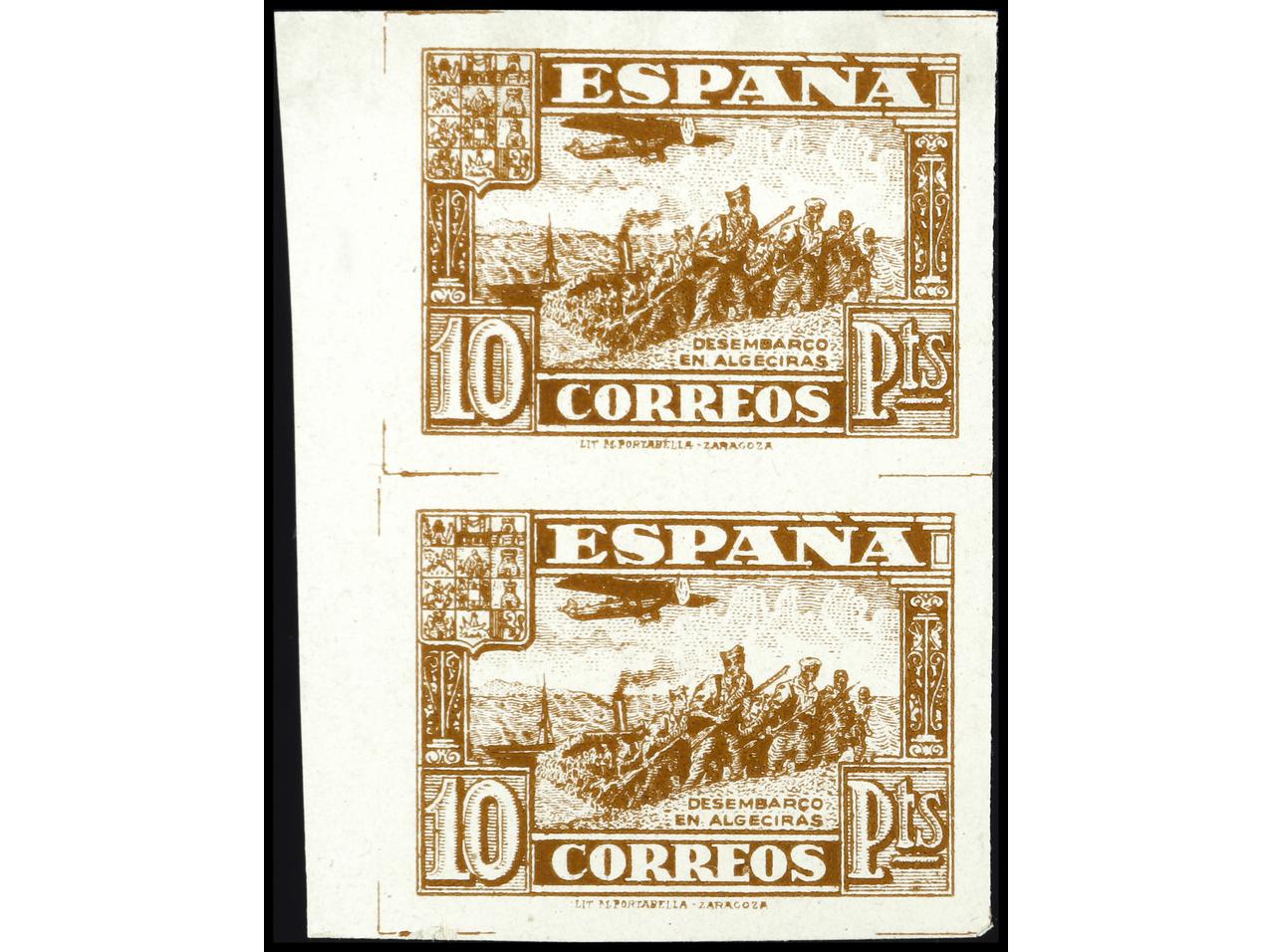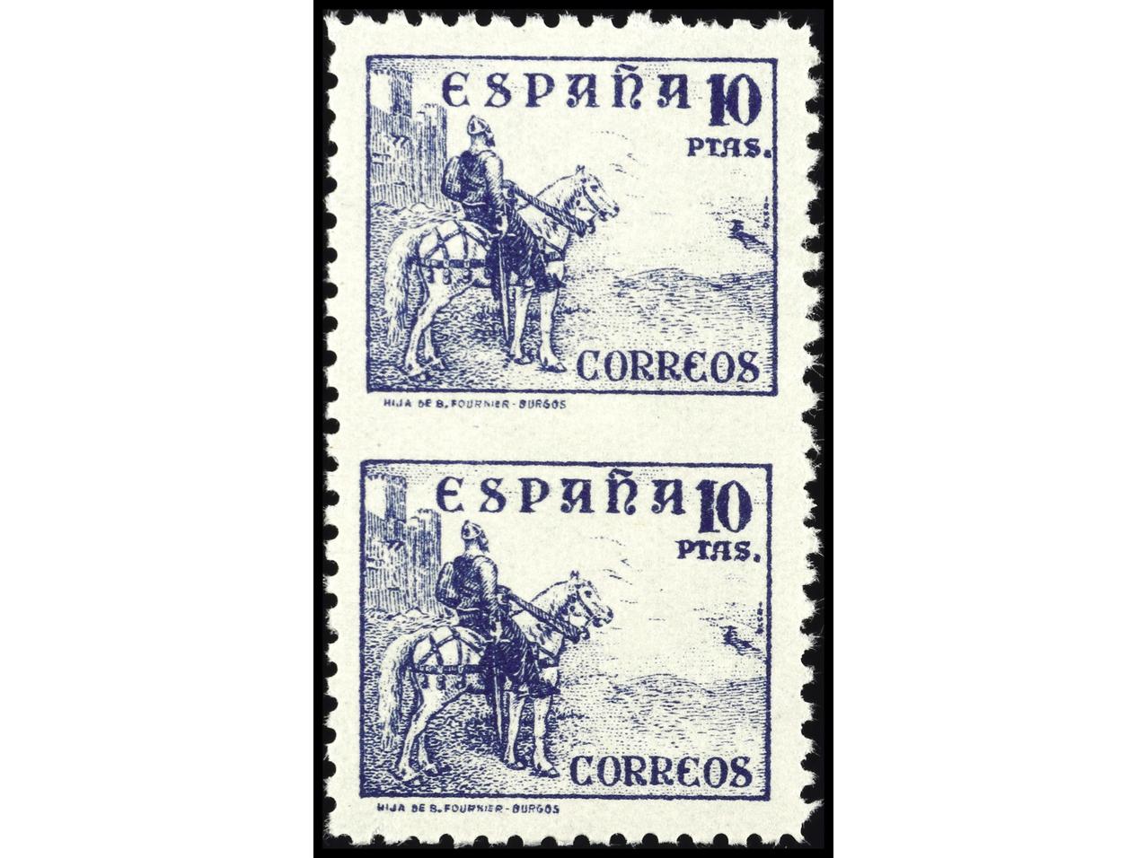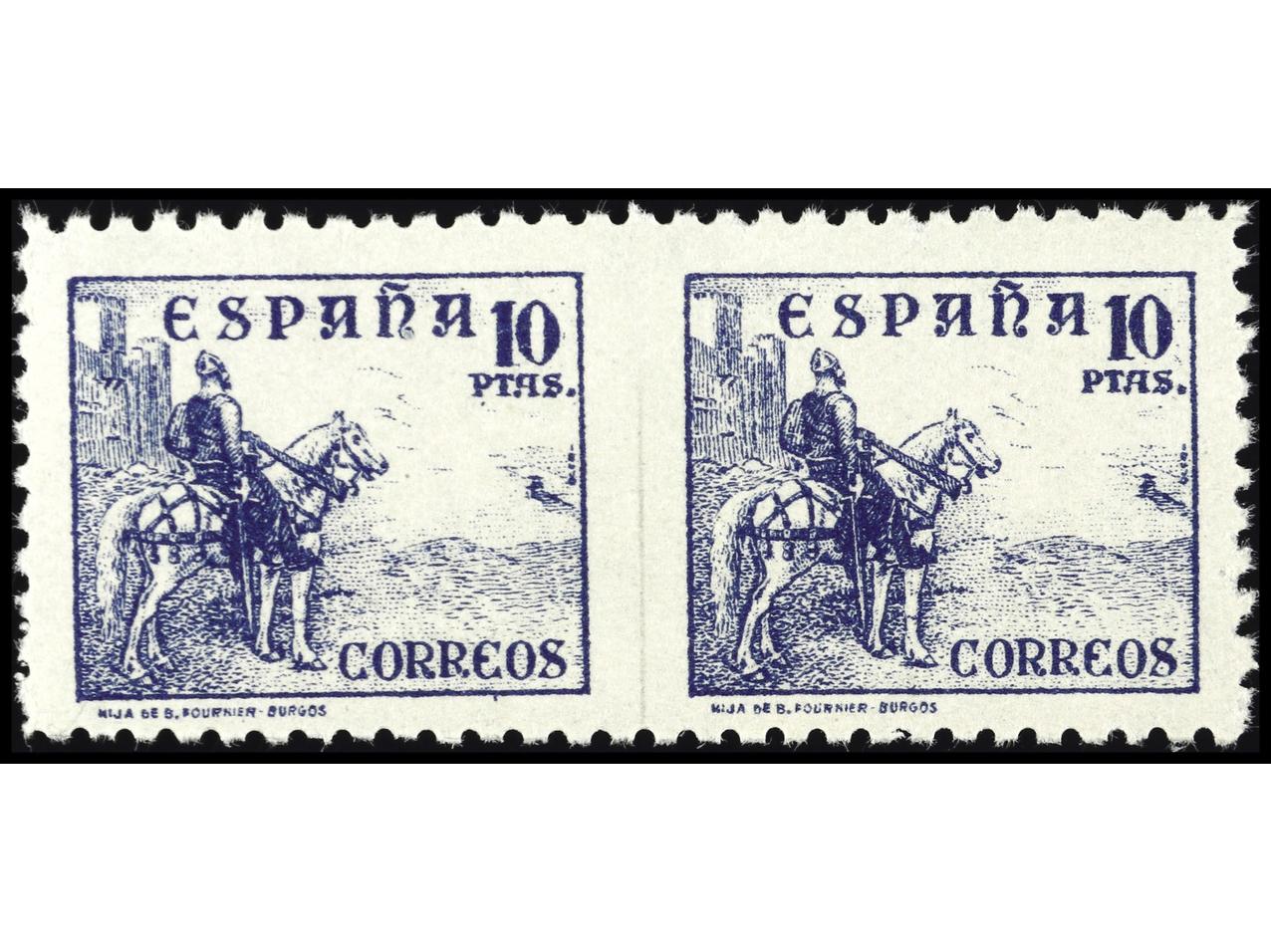 ESPAÑA. 10 pts. azul en pareja vertical SIN DENTAR POR EN MEDIO. PRECIOSA. RARA. Ed.830spv. Cat. 505€. (Image1)