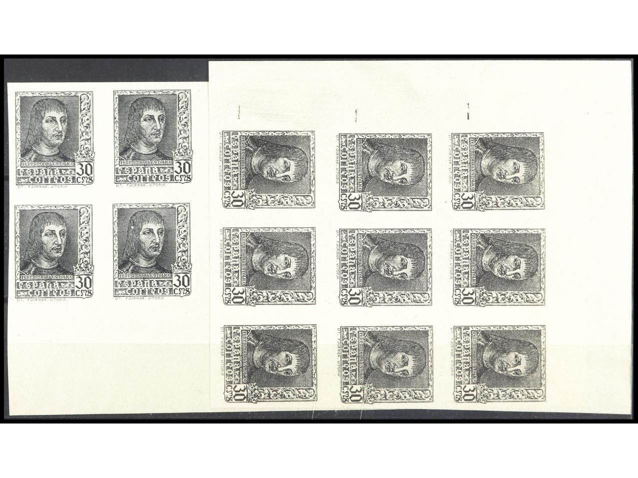 ESPAÑA. 30 ´CMS´ negro. Bloques de 12 y de 9 SIN DENTAR con distinta tonalidad. COLOR CAMBIADO. OCASIÓN. Ed.844Aeca(21). Cat. 3.192€. (Image1)