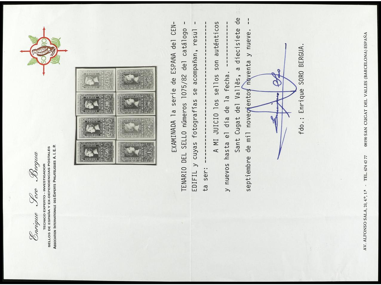 ESPAÑA. SERIE COMPLETA, 8 valores. Goma no original. Cert. SORO. Ed.1075/82. (Image1) (Image2)
