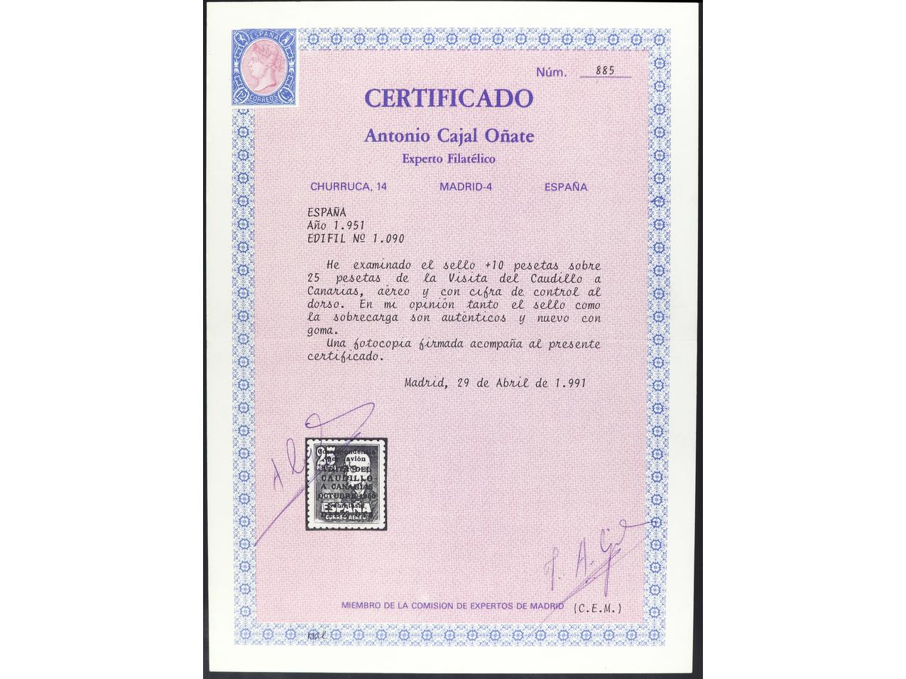 ESPAÑA. CAUDILLO A CANARIAS CON NÚMERO. Bien centrado. Cert. A. CAJAL. MUY BONITO. OCASIÓN. Ed.1090. Cat. 1060€. (Image1) (Image2)