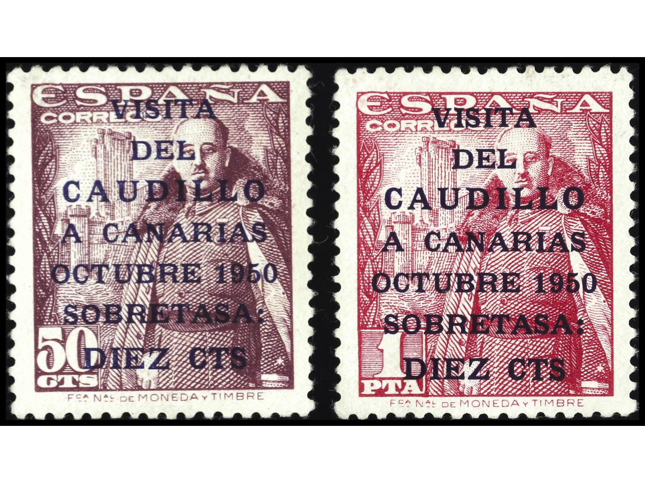 ESPAÑA. CAUDILLO A CANARIAS. SERIE COMPLETA. Bien centrada. Dictamen CEM. PRECIOSA. RARA. OCASIÓN. Ed.1083A/B. Cat. 380€. (Image1) (Image2)
