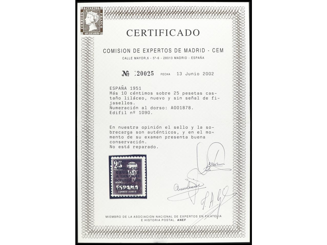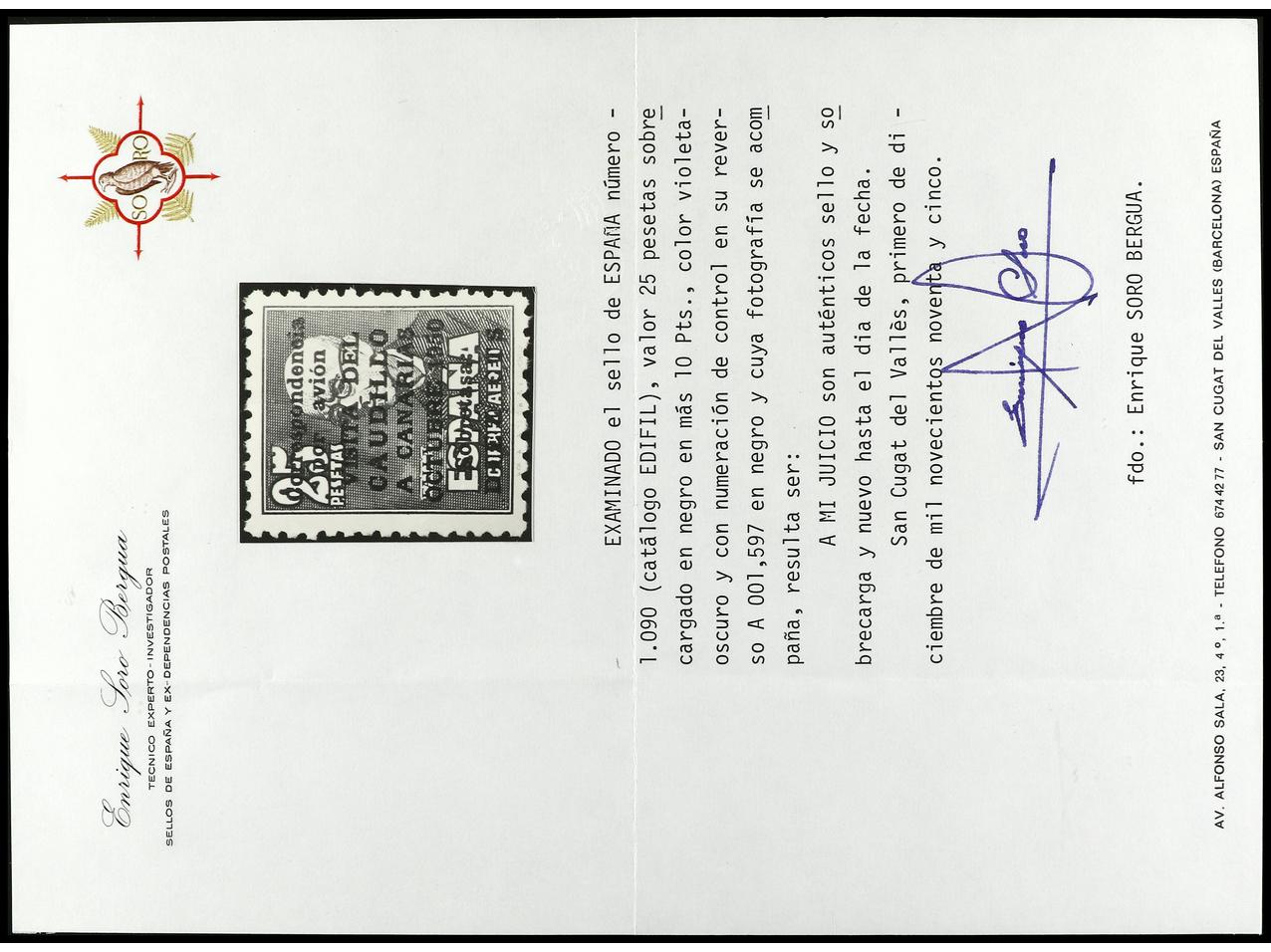 ESPAÑA. CAUDILLO A CANARIAS CON NÚMERO. Cert. CEM. BONITO. RARO. Ed.1090. Cat. 1.060€. (Image1) (Image2)