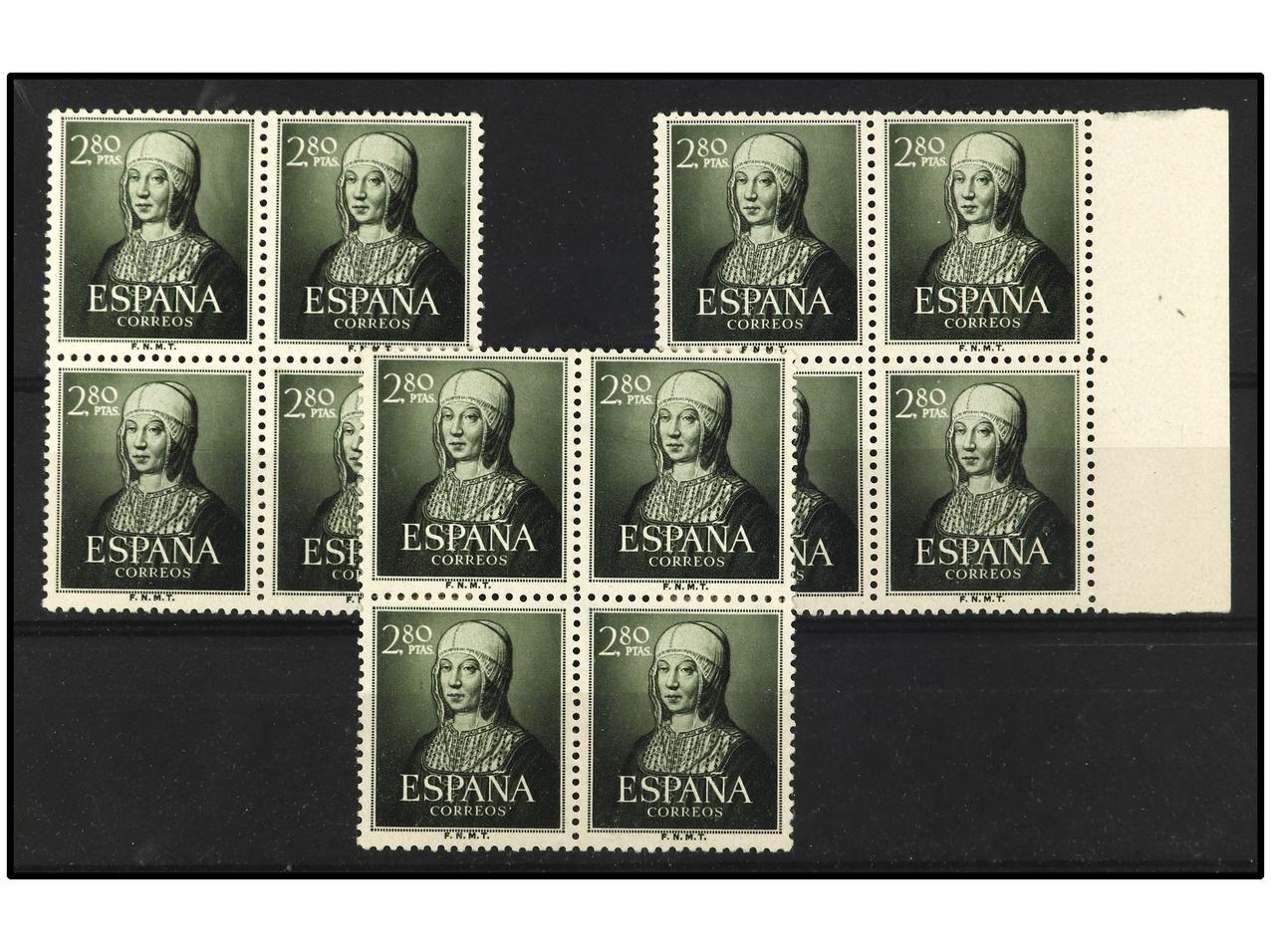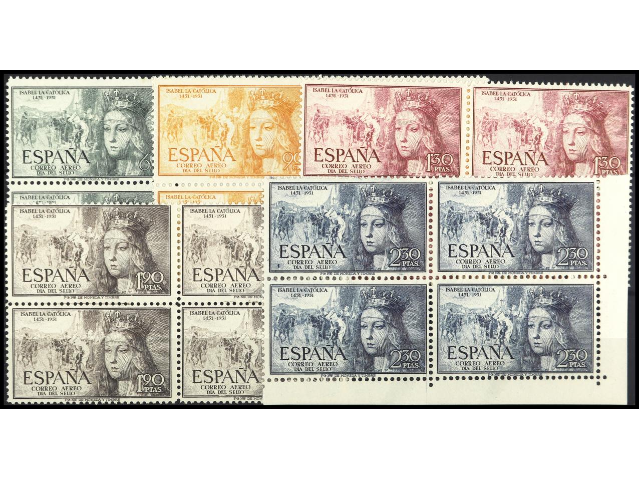 ESPAÑA. ISABEL AÉREA. SERIE COMPLETA en bloque de 4. MUY BONITA. Ed.1097/1101(4). Cat. 212€. (Image1)