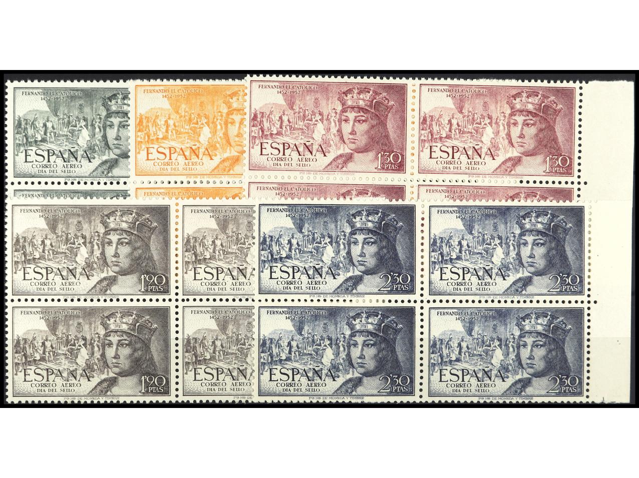 ESPAÑA. FERNANDO AÉREA. SERIE COMPLETA en bloque de 4 con borde lateral de hoja. PRECIOSA. Ed.1111/5(4). Cat. 134€. (Image1)