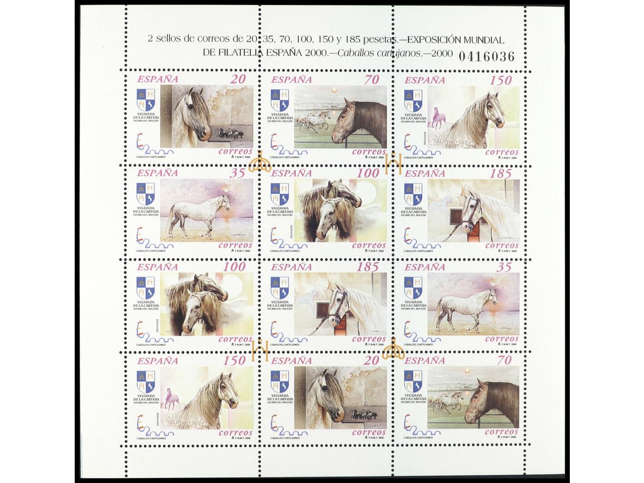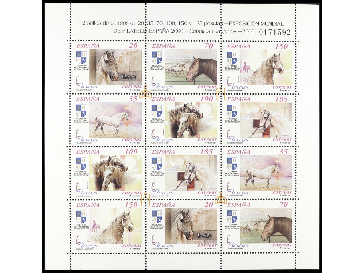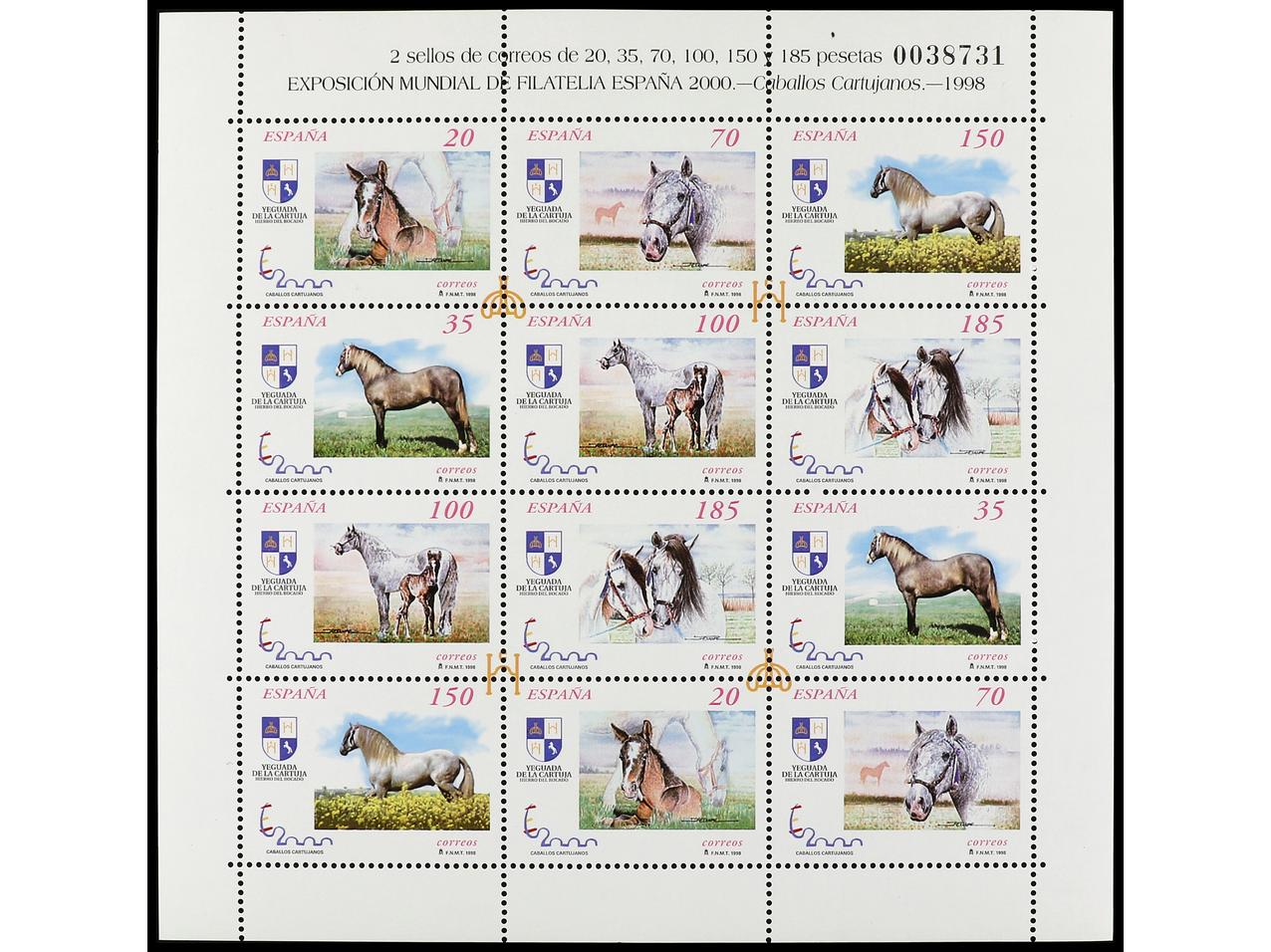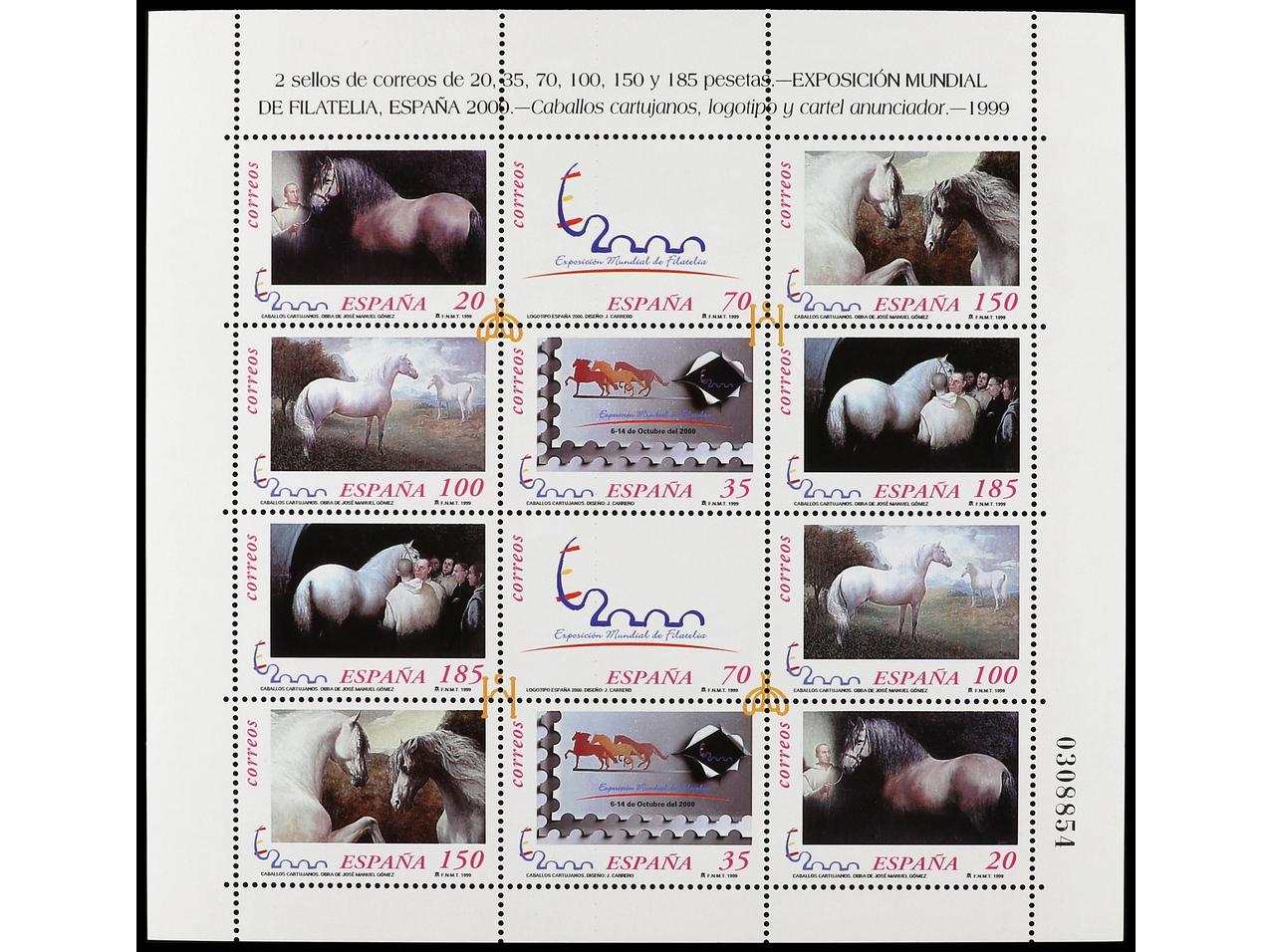 ESPAÑA. CABALLO CARTUJANOS. 2 Minipliegos de cada. Además se añaden 5 pruebas de lujo diferentes: 12/3, 17/8 y 22, más pruebas especial E.1. OCASIÓN. Ed.MP.62(2), 67(2) y 69(2). Cat. 494€.