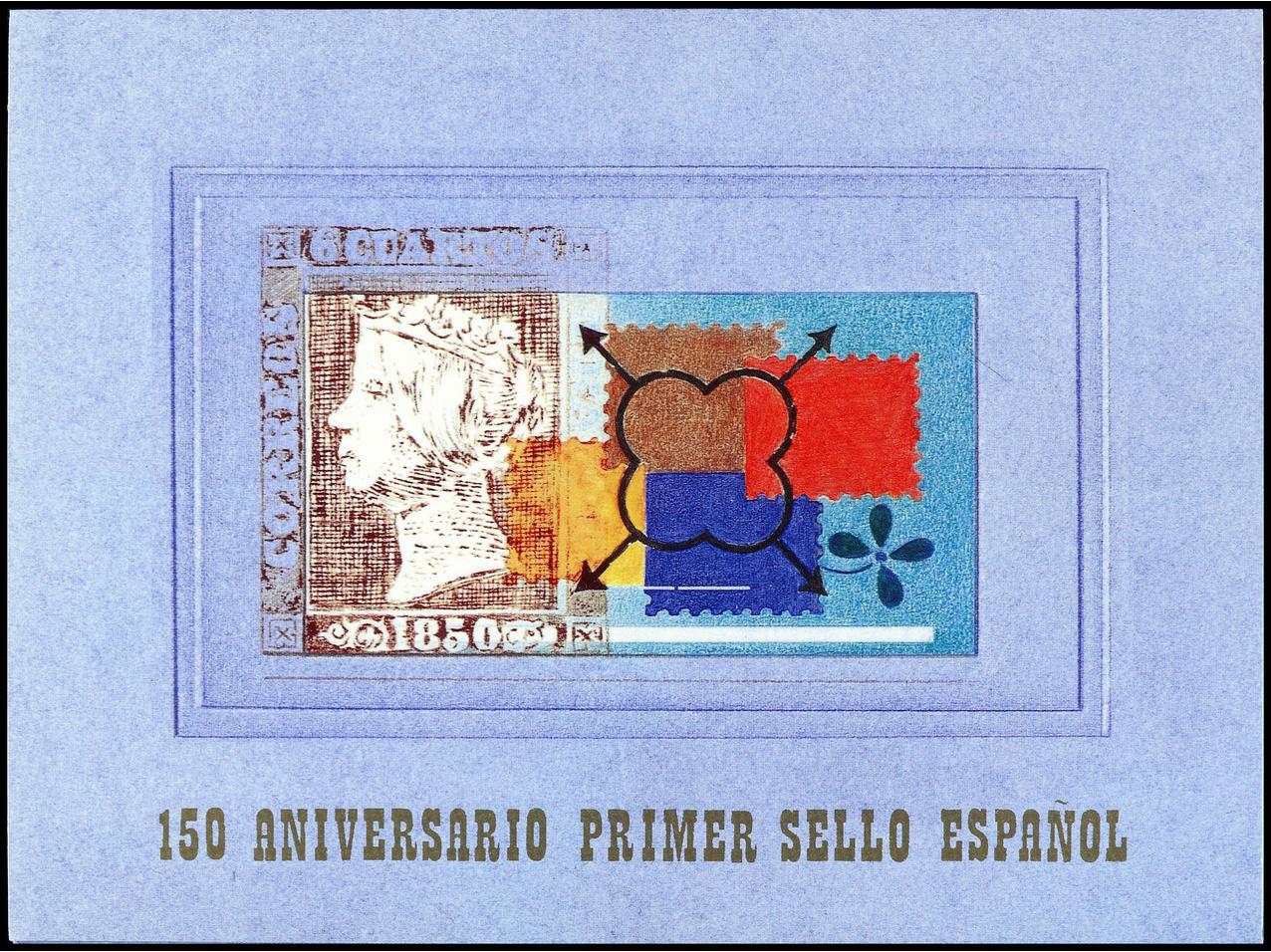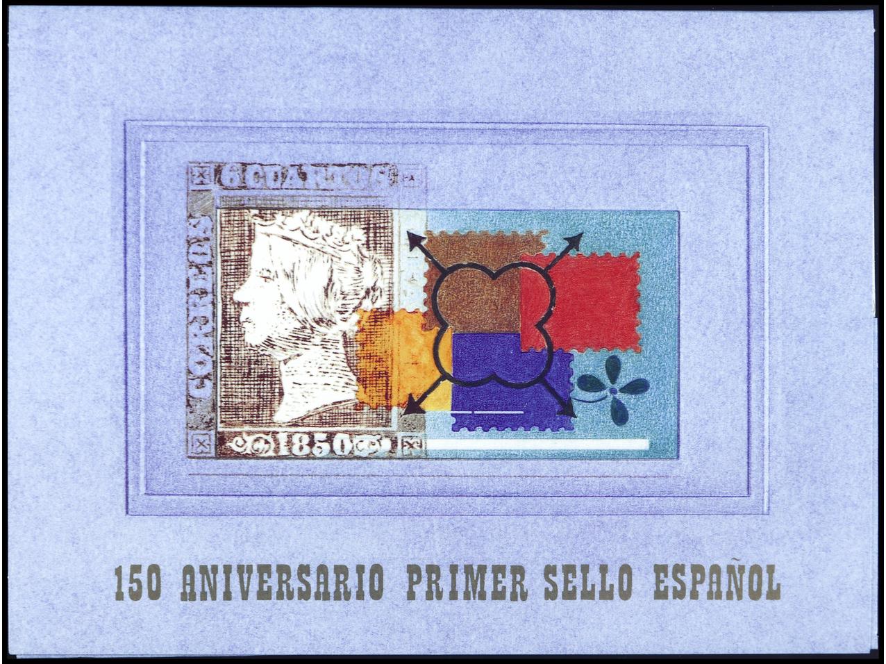ESPAÑA. 150 ANIV. DEL SELLO ESPAÑOL. 4 carpetas. Ed.3711AC. Cat. 400€. (Image1)