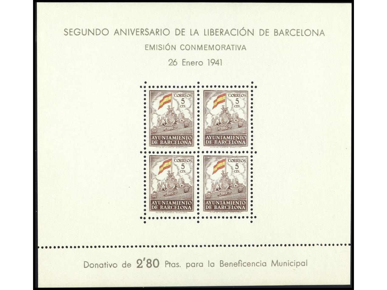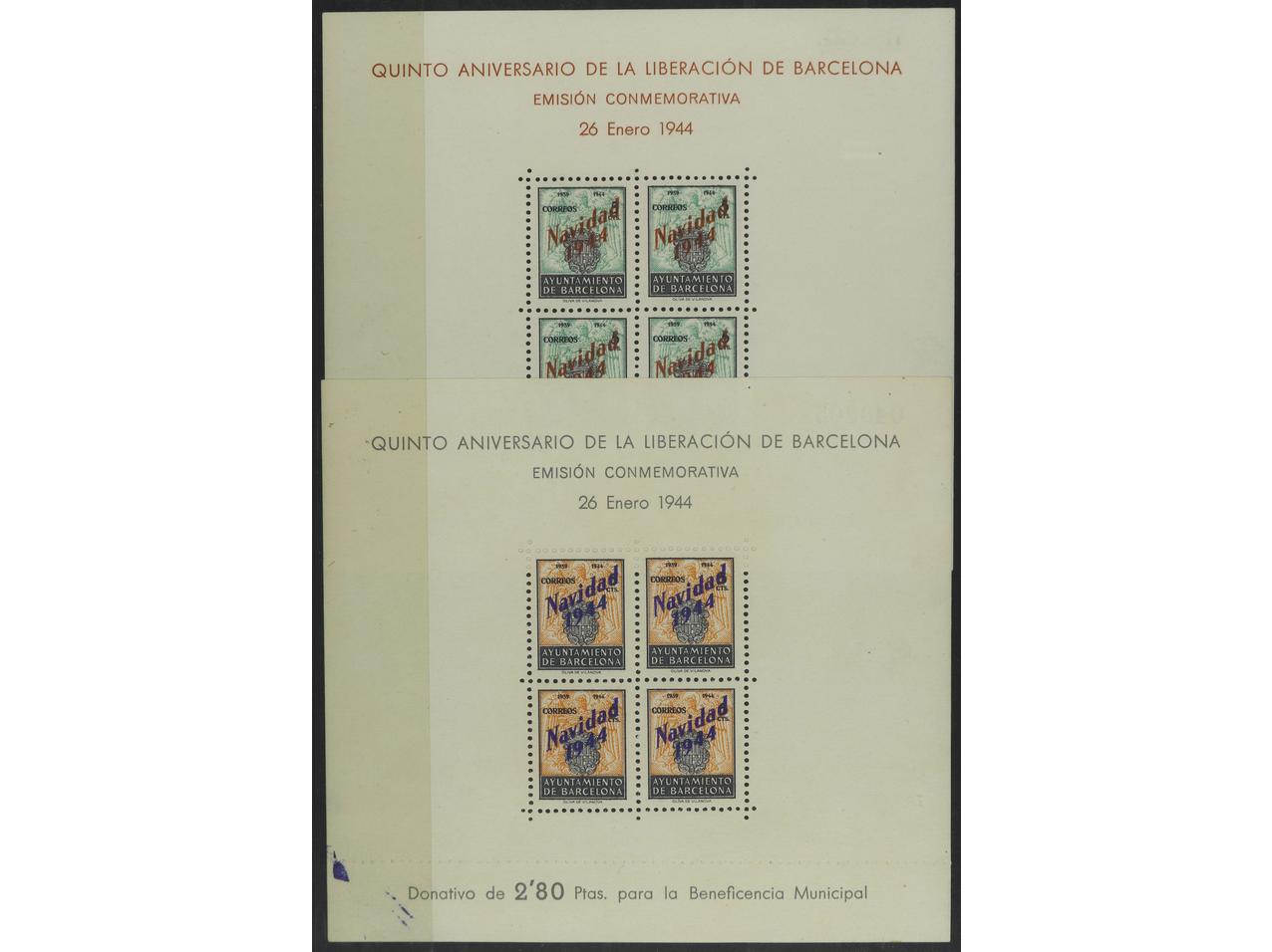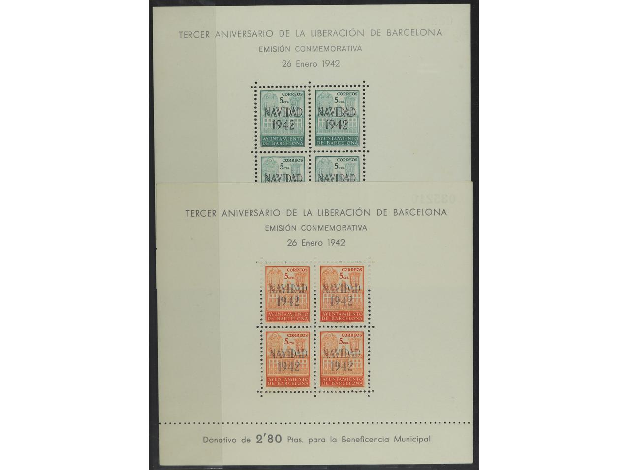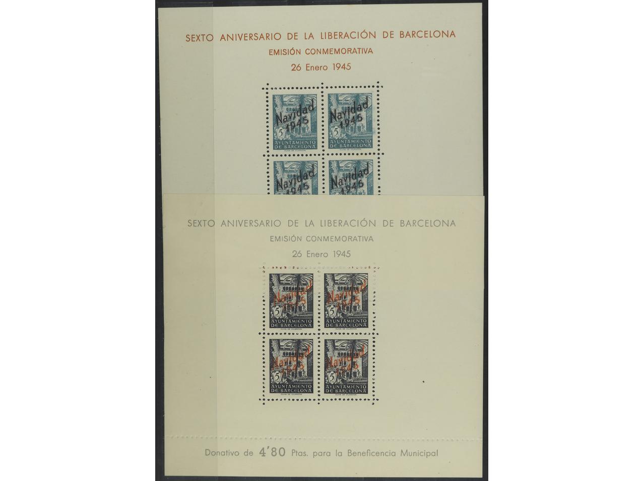 ESPAÑA: AYUNTAMIENTO DE BARCELONA. 1941-1945. Lote de 10 HB. diferentes: 31/2, 40/1, NE25/6, NE29/30, NE31 y NE32. La NE25 mancha azul en el anverso. RARAS. OCASIÓN. (Image1) (Image2)