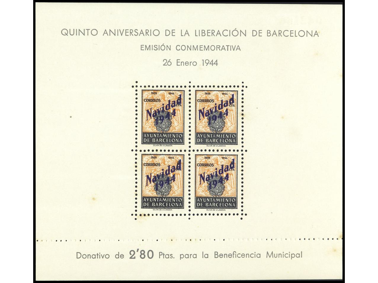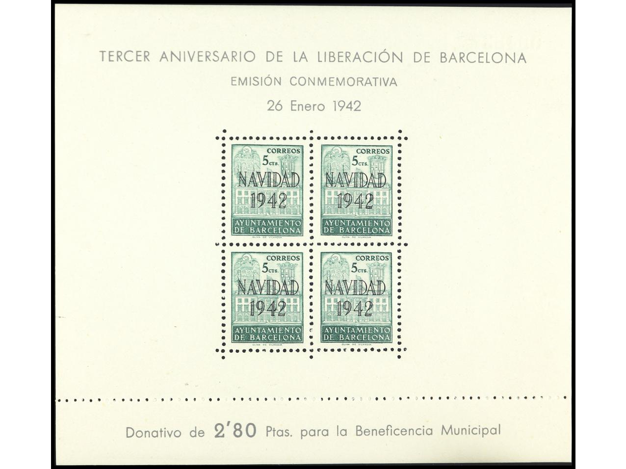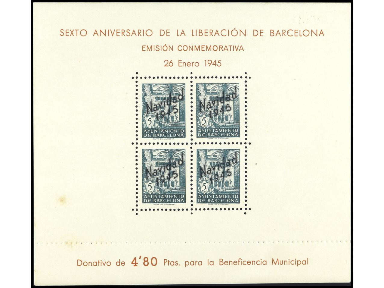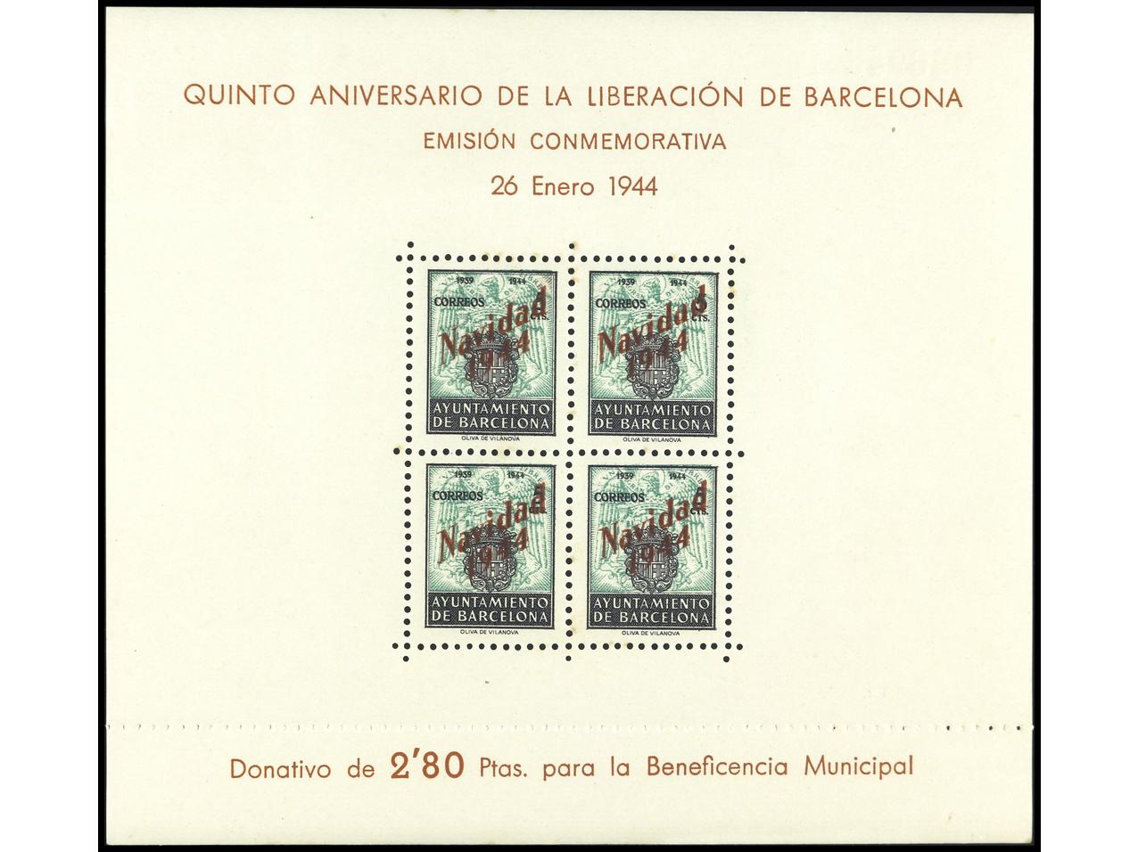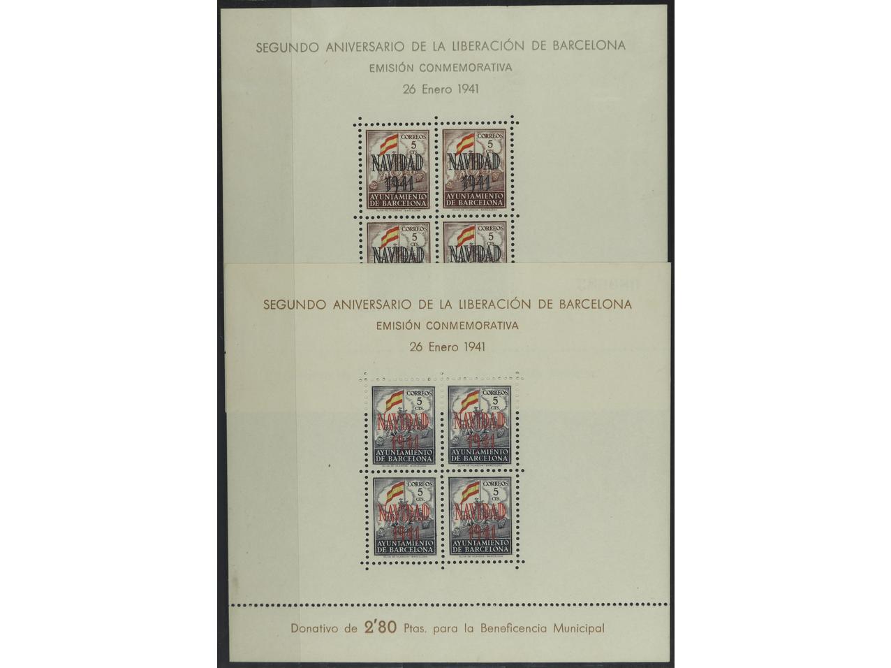 ESPAÑA: AYUNTAMIENTO DE BARCELONA. 1941-1945. Lote de 10 HB. diferentes: 31/2, 40/1, NE25/6, NE29/30, NE31 y NE32. La NE25 mancha azul en el anverso. RARAS. OCASIÓN. (Image1) (Image2)