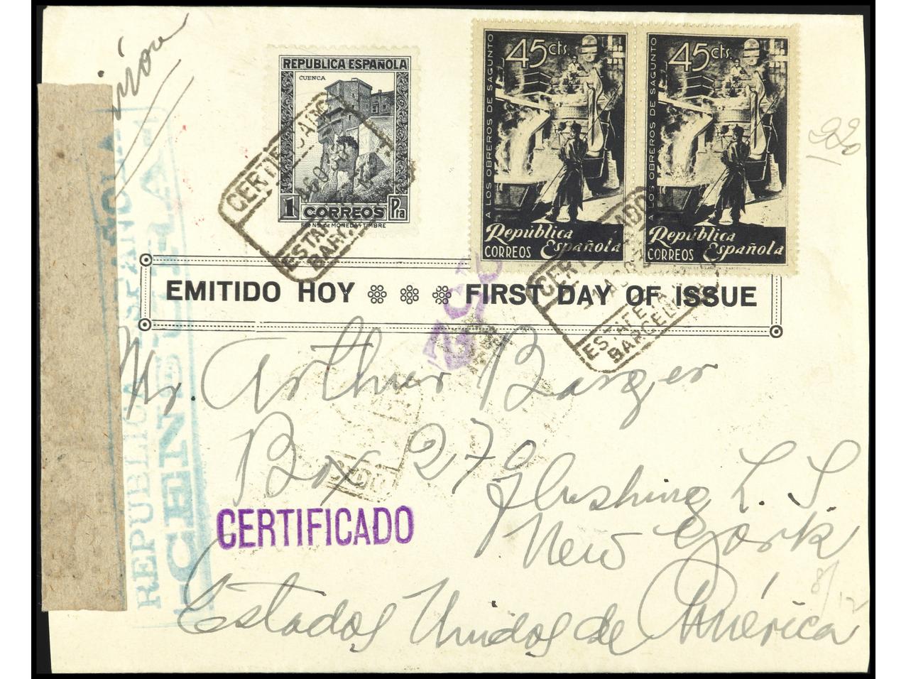 1635 c imageESPAÑA E. LOCALES PATRIOTICAS: LA LINEA DE LA CONCEPCION. Carta de la LINEA DE LA CONCEPCION a Julio Restart en PARIS el 18 Jul. 1937 franqueada con la serie completa. RARISIMA. Ed.45/53. (Image1)