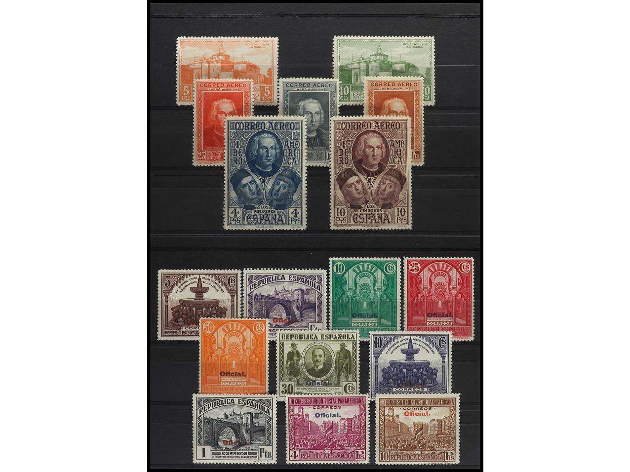 1709 ESPAÑA. 1930. Colección de las series terrestre y aérea de IBEROAMERICANA compuesta por VARIEDADES DE COLOR, DENTADO, IMPRESIÓN, etc... montada en hojas de álbum. Hay piezas interesantes. Raro conjunto. OCASIÓN. A EXAMINAR.