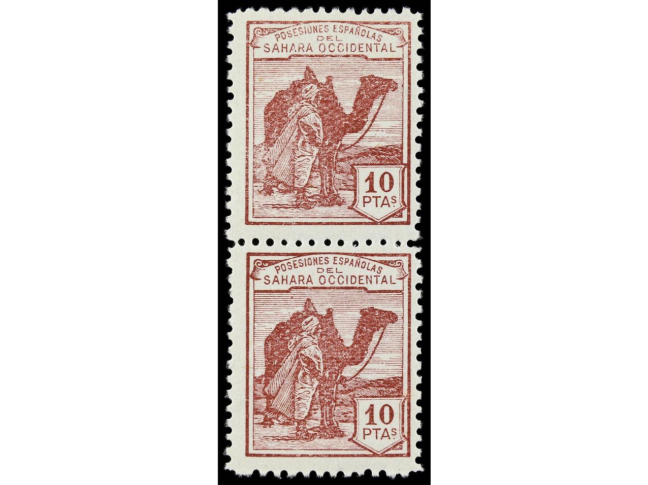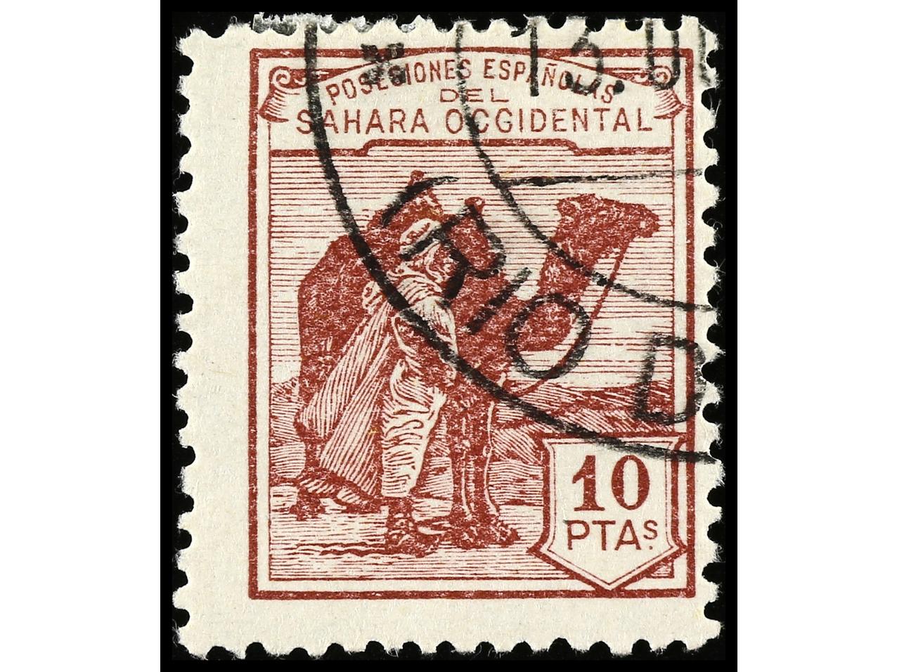 COLONIAS ESPAÑOLAS: SAHARA. 10 pts. carmín violeta. 10 sellos. Numeración ceros. Ed.12N (10). Cat. +3.350€. (Image1) (Image2)