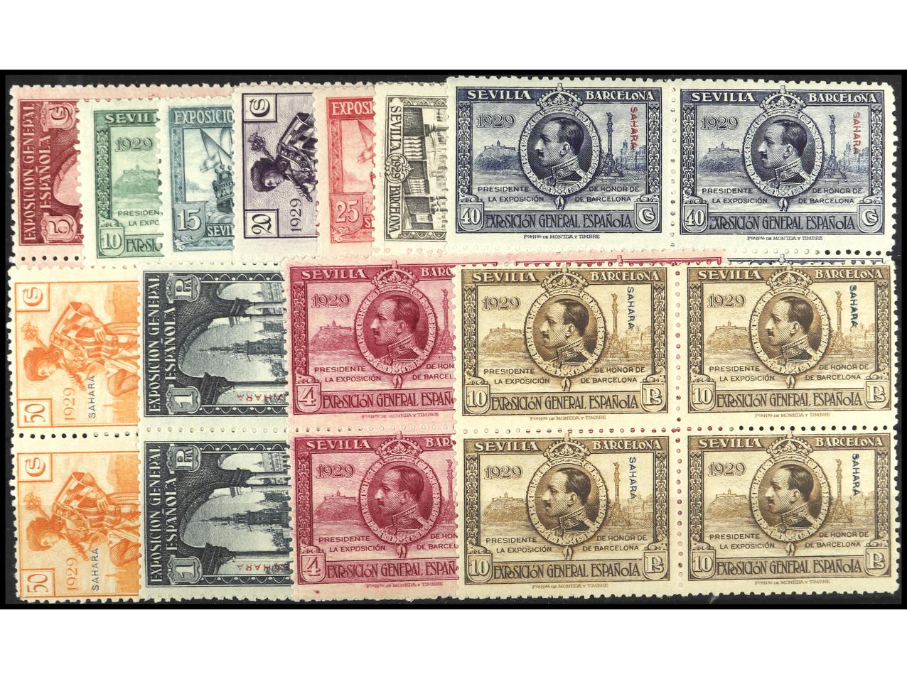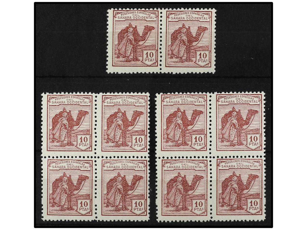COLONIAS ESPAÑOLAS: SAHARA. 9 SERIES COMPLETAS, 12 valores sueltos y en bloques. En general buena calidad. EXAMINAR. Ed.1/12 (9). Cat. 4.950€.