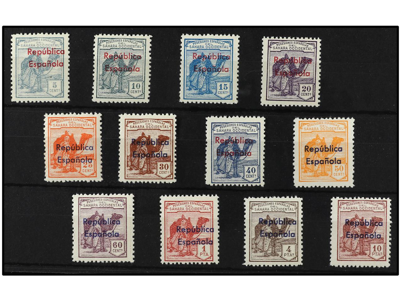 COLONIAS ESPAÑOLAS: SAHARA. SERIE COMPLETA, 12 valores. Habilitación horizontal. Ed.36B/47B. Cat. 555€. (Image1) (Image2)