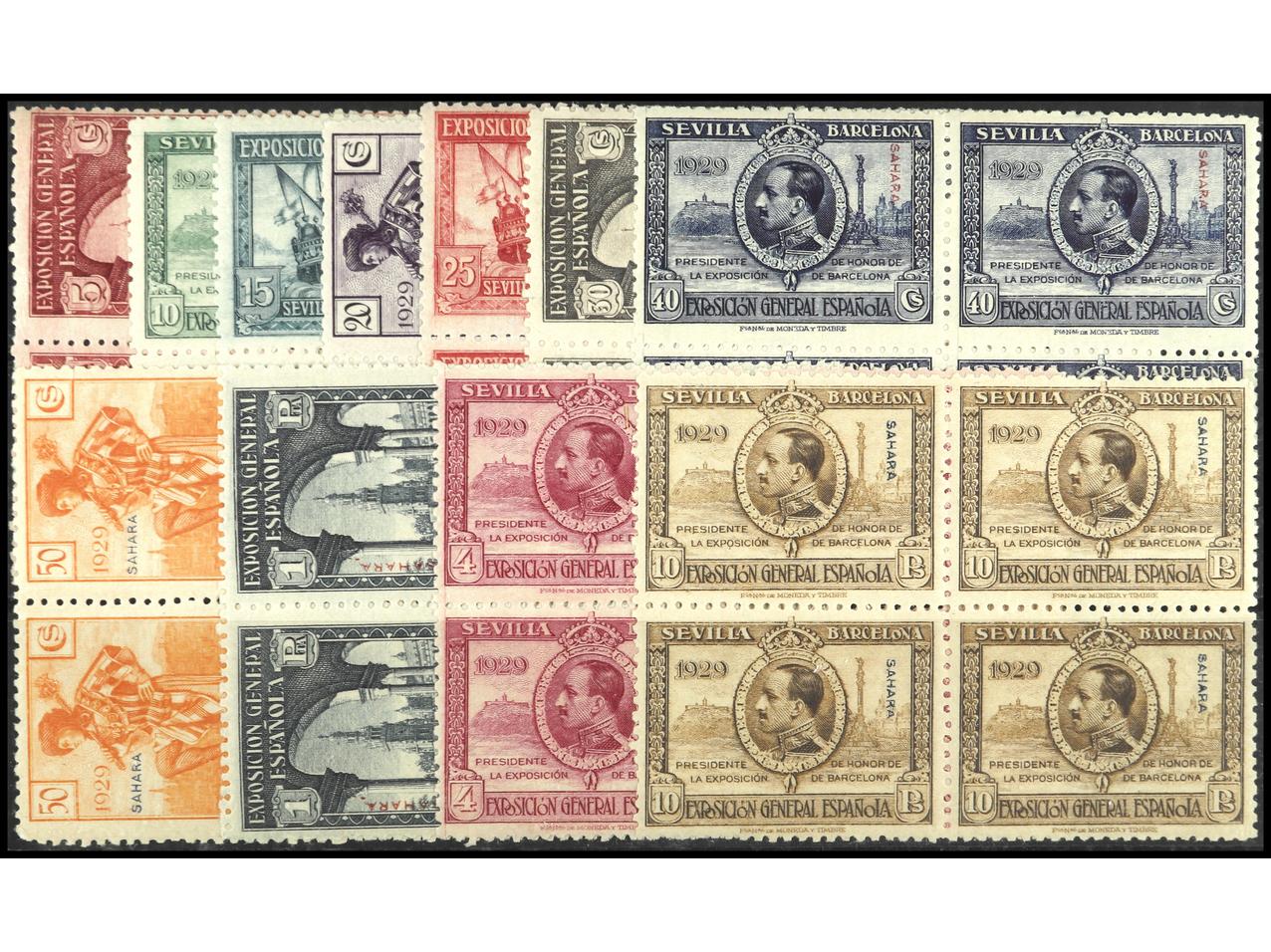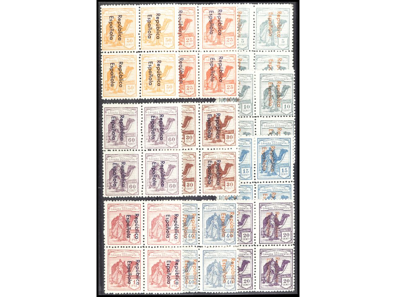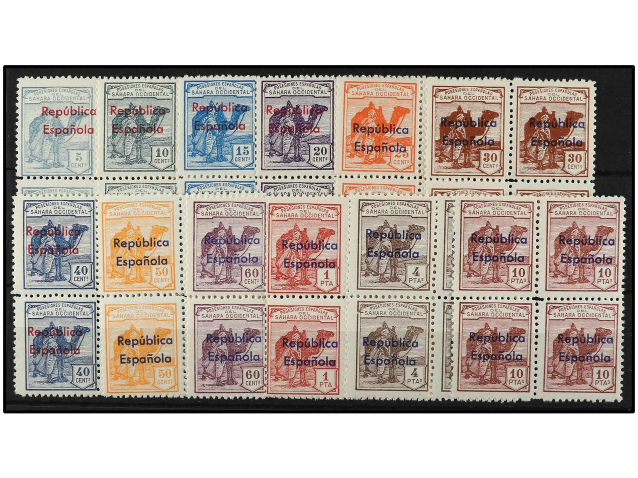 COLONIAS ESPAÑOLAS: SAHARA. SERIE COMPLETA. 12 valores en bloques de cuatro. HABILITACIÓN HORIZONTAL. Ed.36B/47B. Cat. 2.220€. (Image1) (Image2)