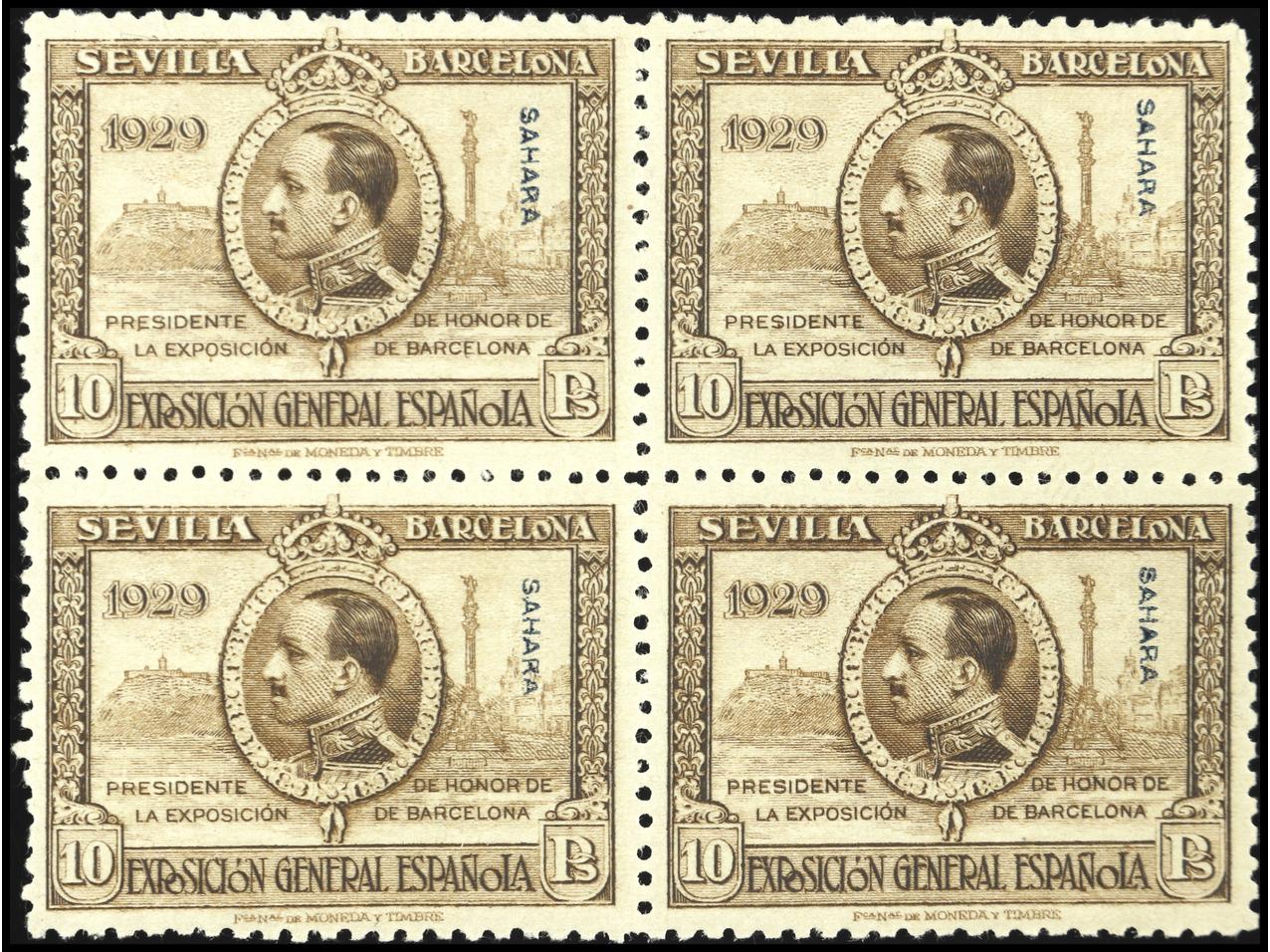 COLONIAS ESPAÑOLAS: SAHARA. Serie corta en bloque de 4 (10 valores). Buena calidad. Ed.36A/45A(4). Cat. 380€. (Image1)