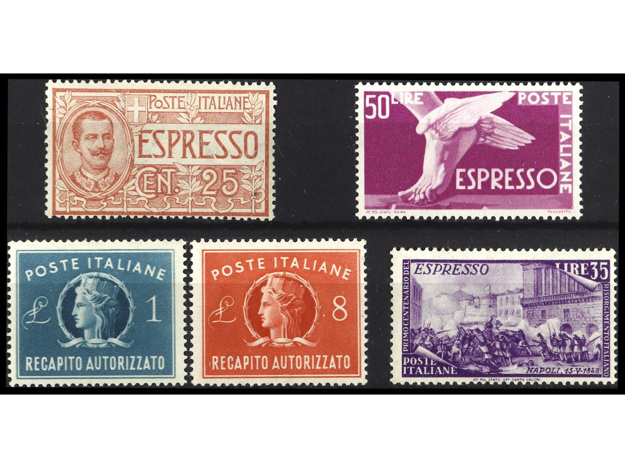 2443 nh imageITALIA. URGENTES. 5 Sellos diferentes. MUY BONITOS. Yv.U.1, 31A, 33/4 y 35. Yvert.427€. (Image1)