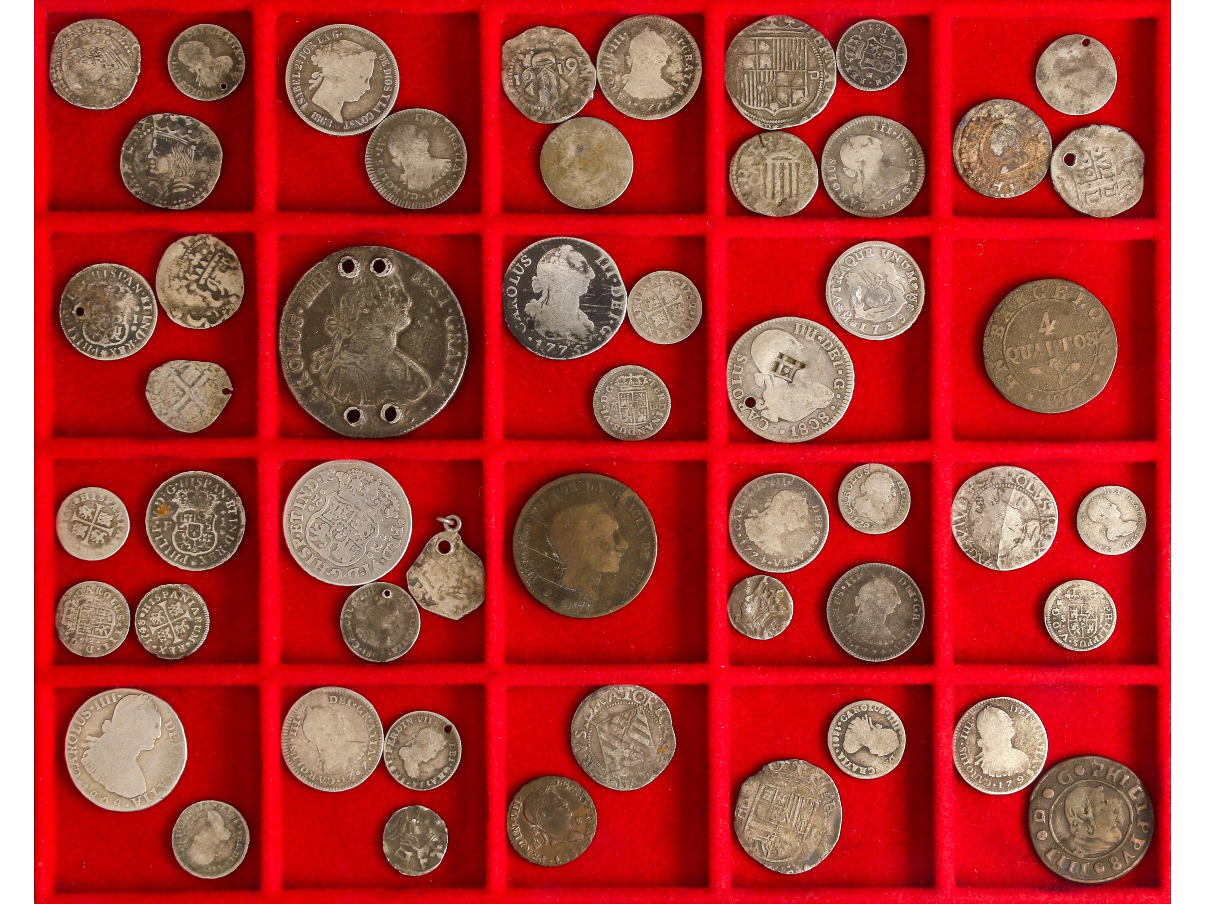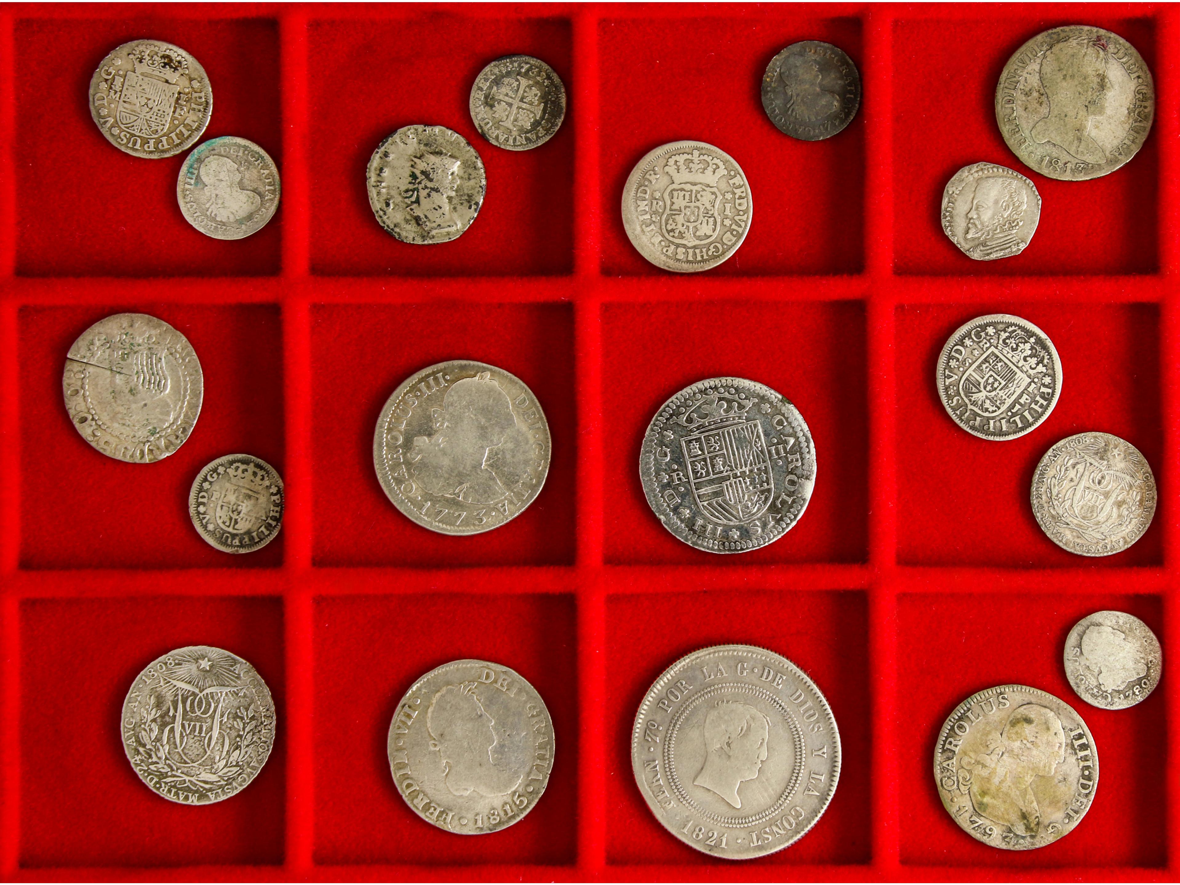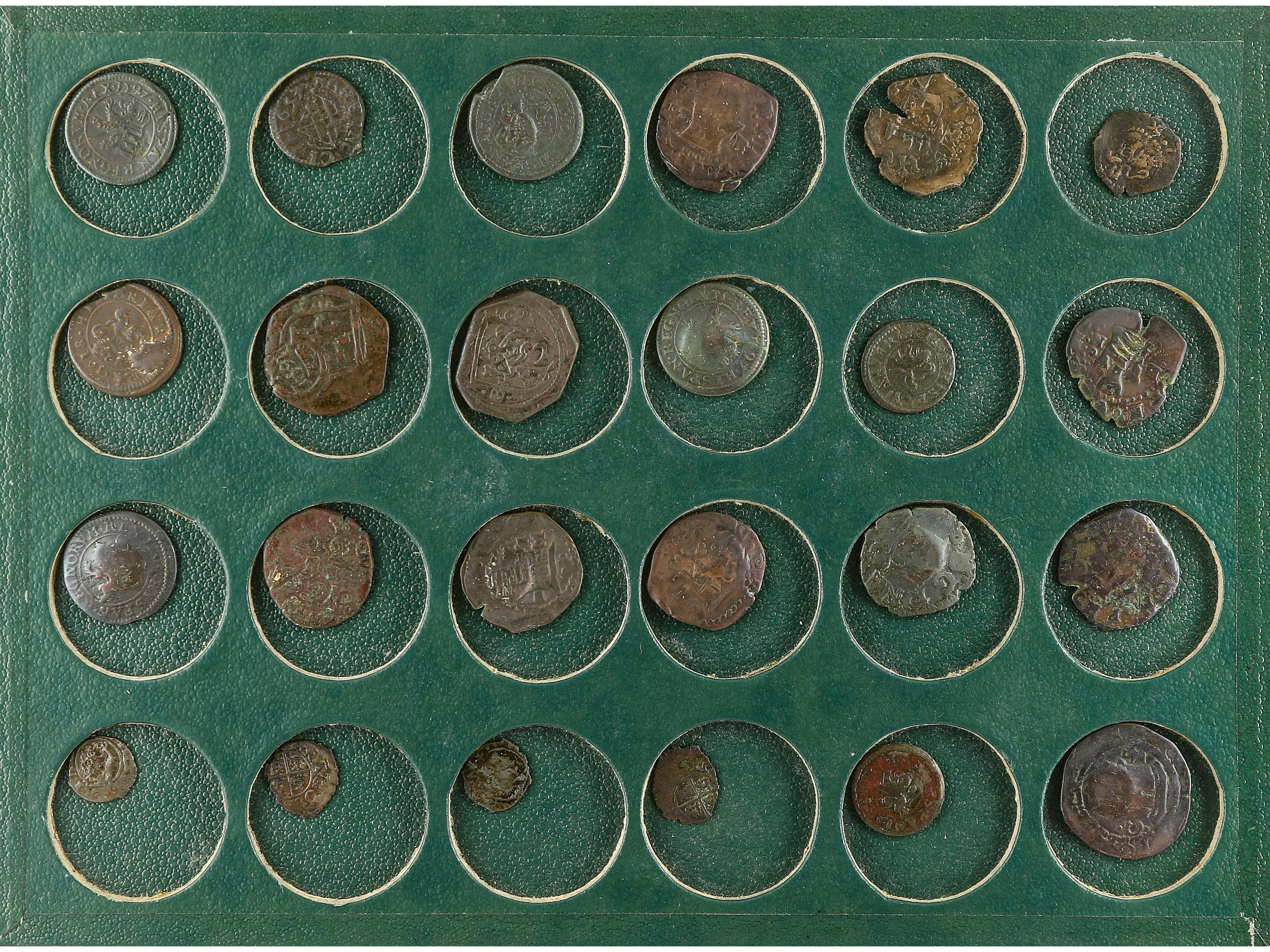 Lote 19 monedas. IMPERIO ROMANO a FERNANDO VII. Peso total aprox. 71,55 grs. AR. Lote variado de moneda pequeña a media, mayoría de monarquía hispanica. Alguna medalla de procalmación de Fernando VII. IMPRESCINDIBLE