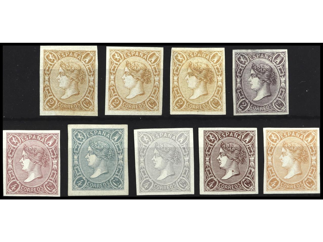 ESPAÑA. 9 PRUEBAS, cuatro de 2 cuartos y cinco de 4 cuartos. PRECIOSAS. RARAS. Ed.69P y 75P. (Image1)