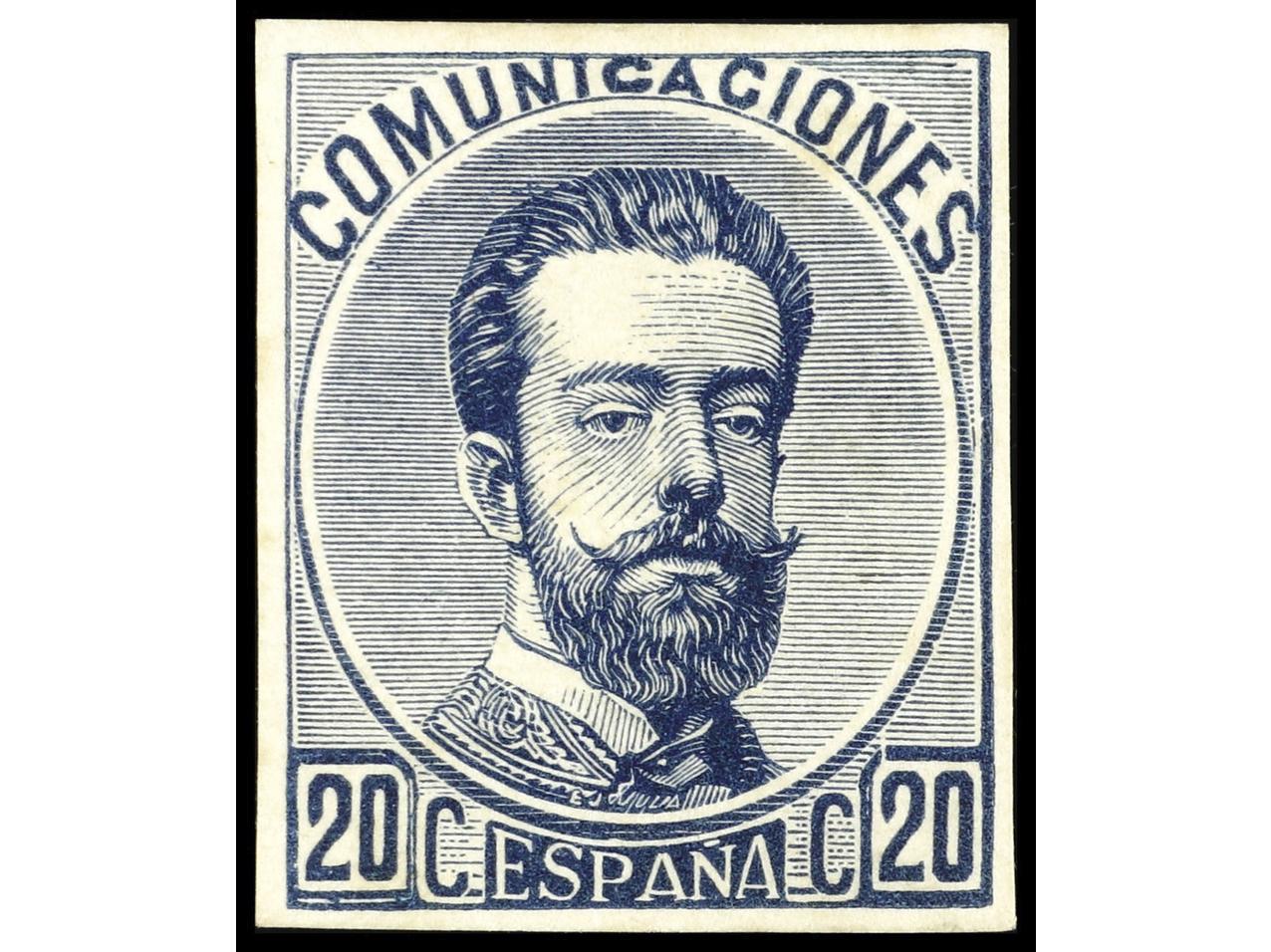 ESPAÑA. 20 cts. PRUEBA sobre cartulina en color azul. RARA. (Image1)