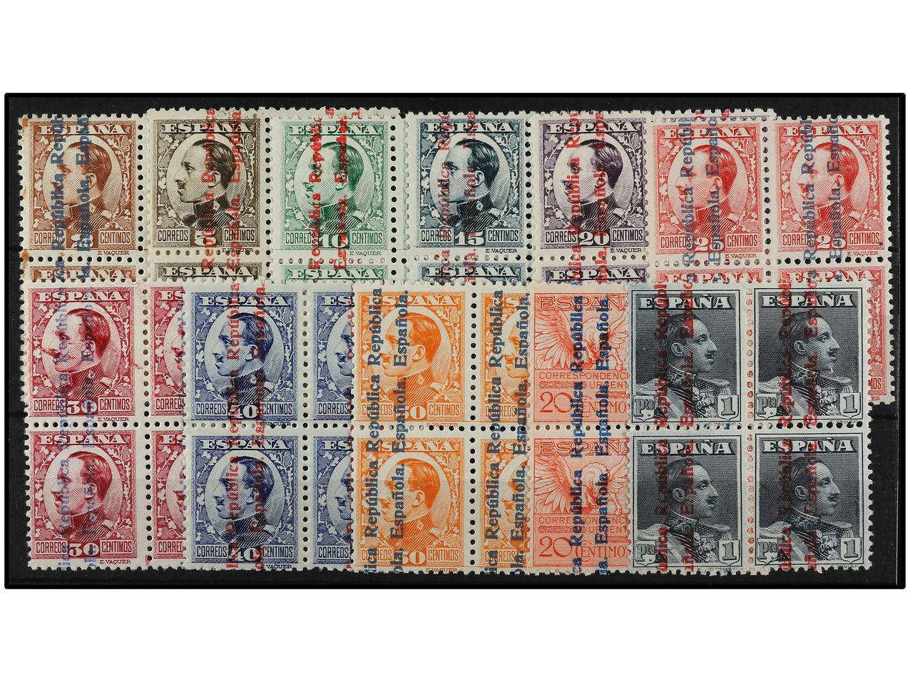 ESPAÑA. SERIE COMPLETA. 11 valores en bloques de cuatro. Muy bonita pese a 5, 15 y 40 cts. leves defectos. Ed.593/603 (4). Cat. 1.340€. (Image1) (Image2)