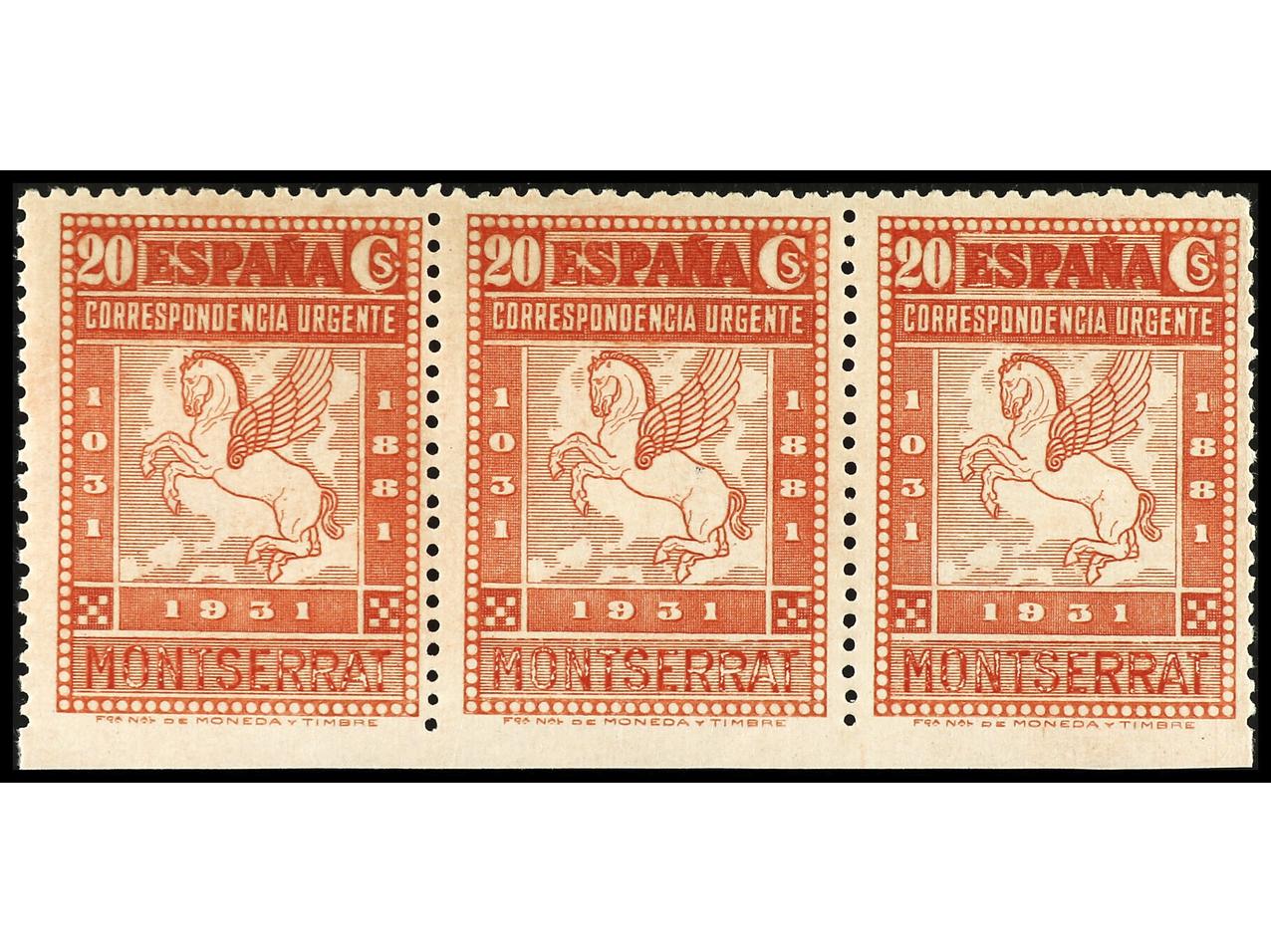 ESPAÑA. 20 cts. carmín. Tira de 3 SIN DENTAR MARGEN INFERIOR. Ed.649smi (3). Cat. +285€. (Image1)