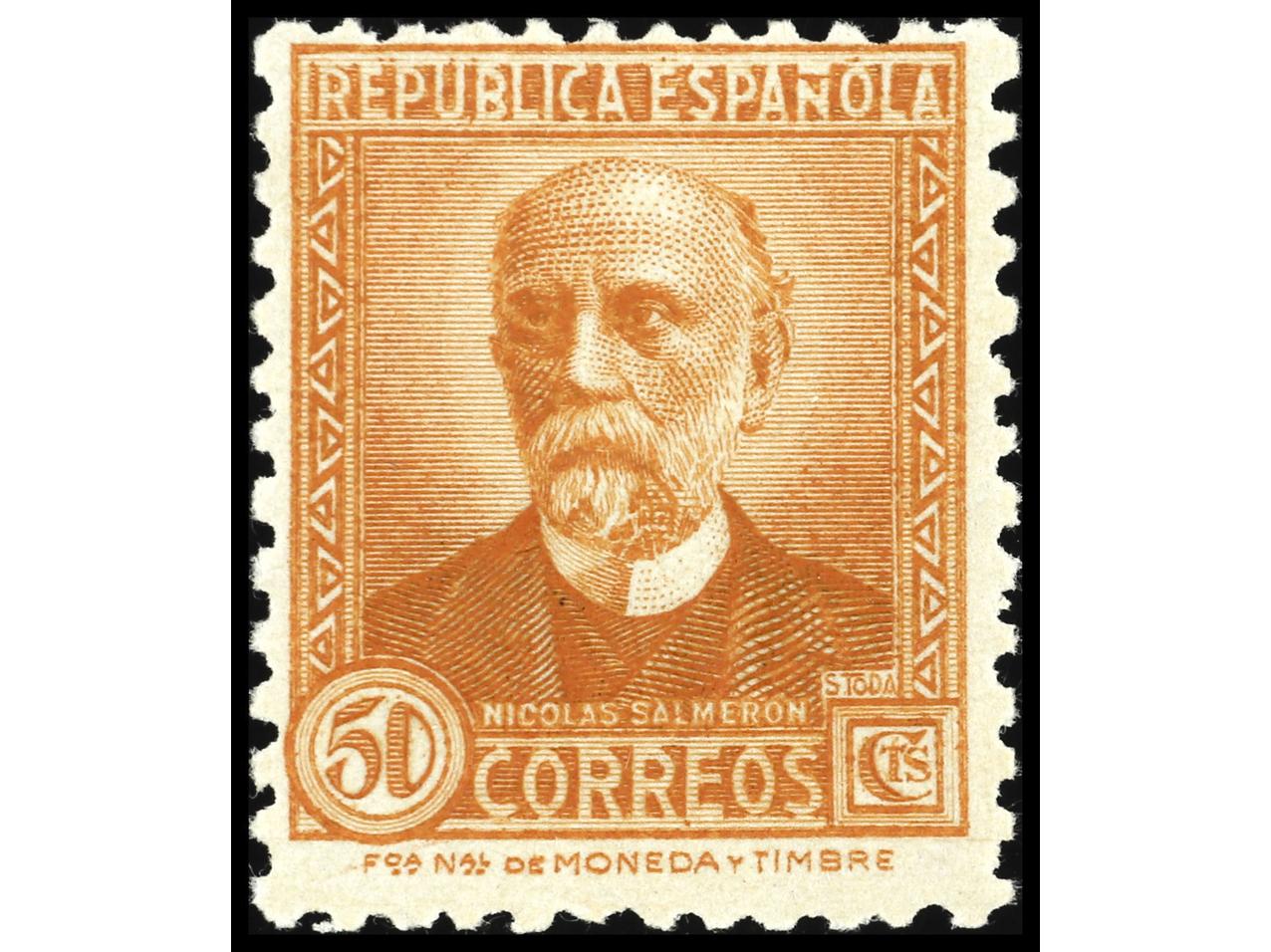 ESPAÑA. 50 cts. naranja rojizo. Precioso sello en el color y el papel del NE34. MUY RARO. Ed.671a. (Image1)