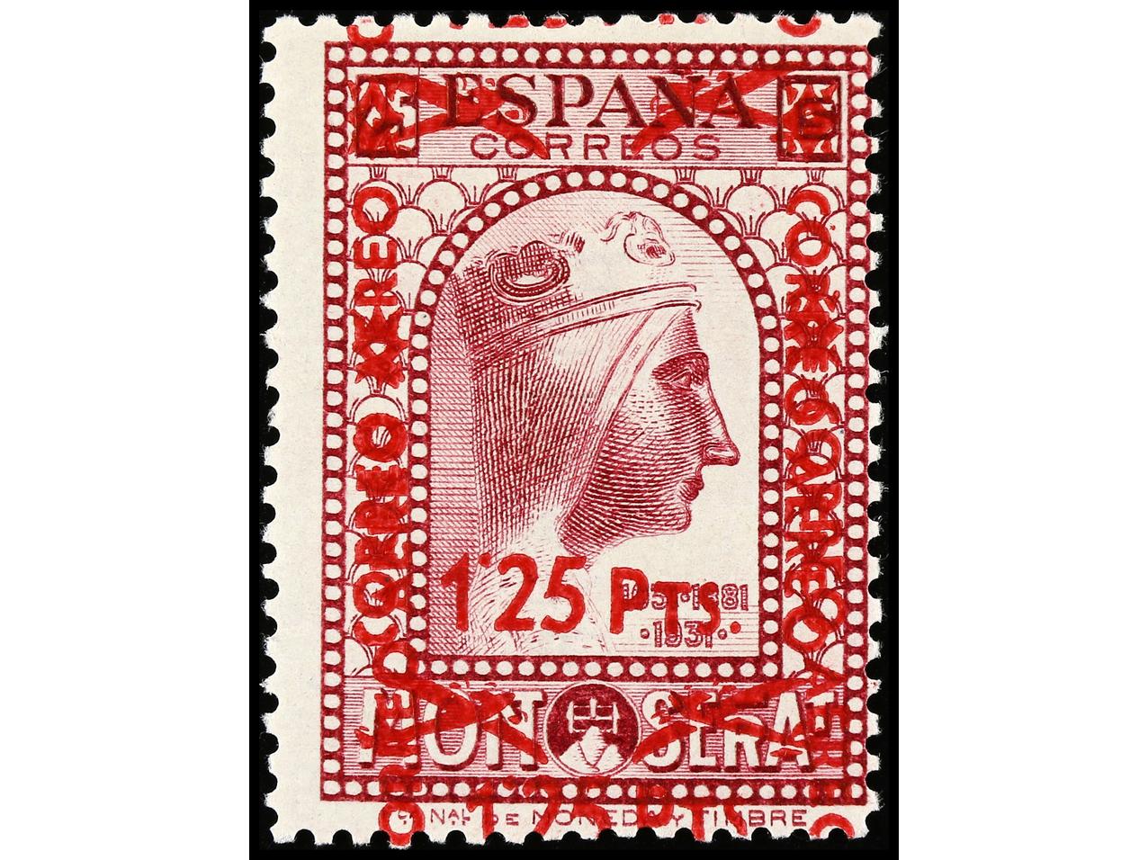 ESPAÑA. 1,25 pts. s. 25 cts. lila rosáceo. HABILITACIÓN DOBLE. Mismo ejemplar que el reproducido en Edifil. Ed.784hh. Cat. +105€. (Image1)