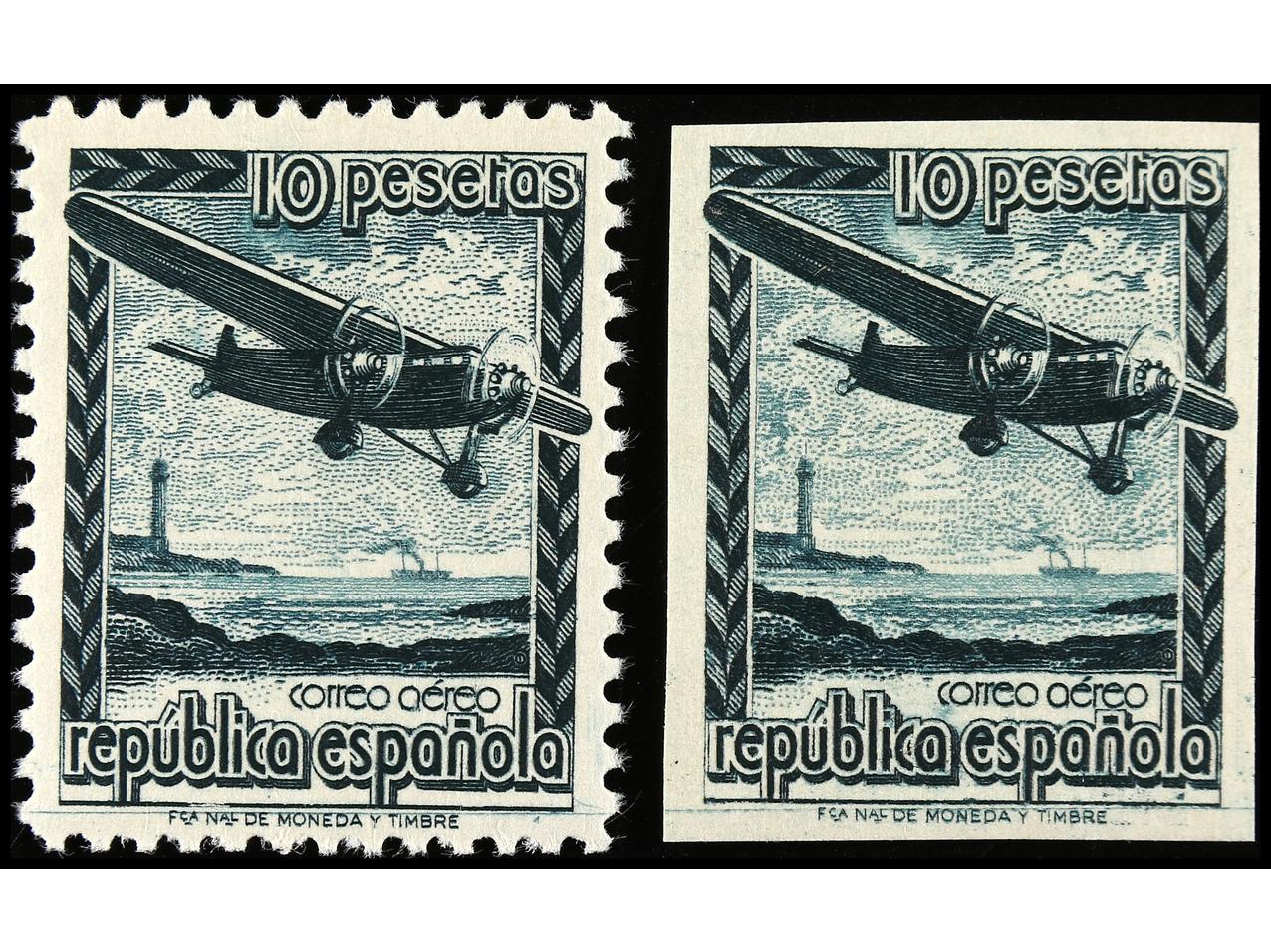 ESPAÑA. SERIE COMPLETA SIN DENTAR. Preciosa pese a un ínfimo punto de óxido en el 5 pts. Cert. CEM. MUY RARA. OCASIÓN. Ed.792s/800s. Cat. 3.050€.