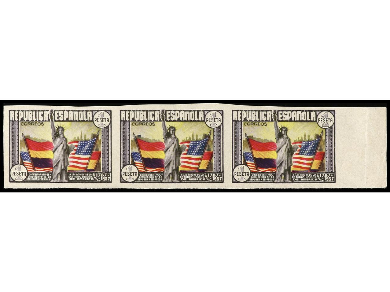 ESPAÑA. 1 pta. multicolor. Tira de 3 SIN DENTAR. Ed.763s (3). Cat. 237€. (Image1)