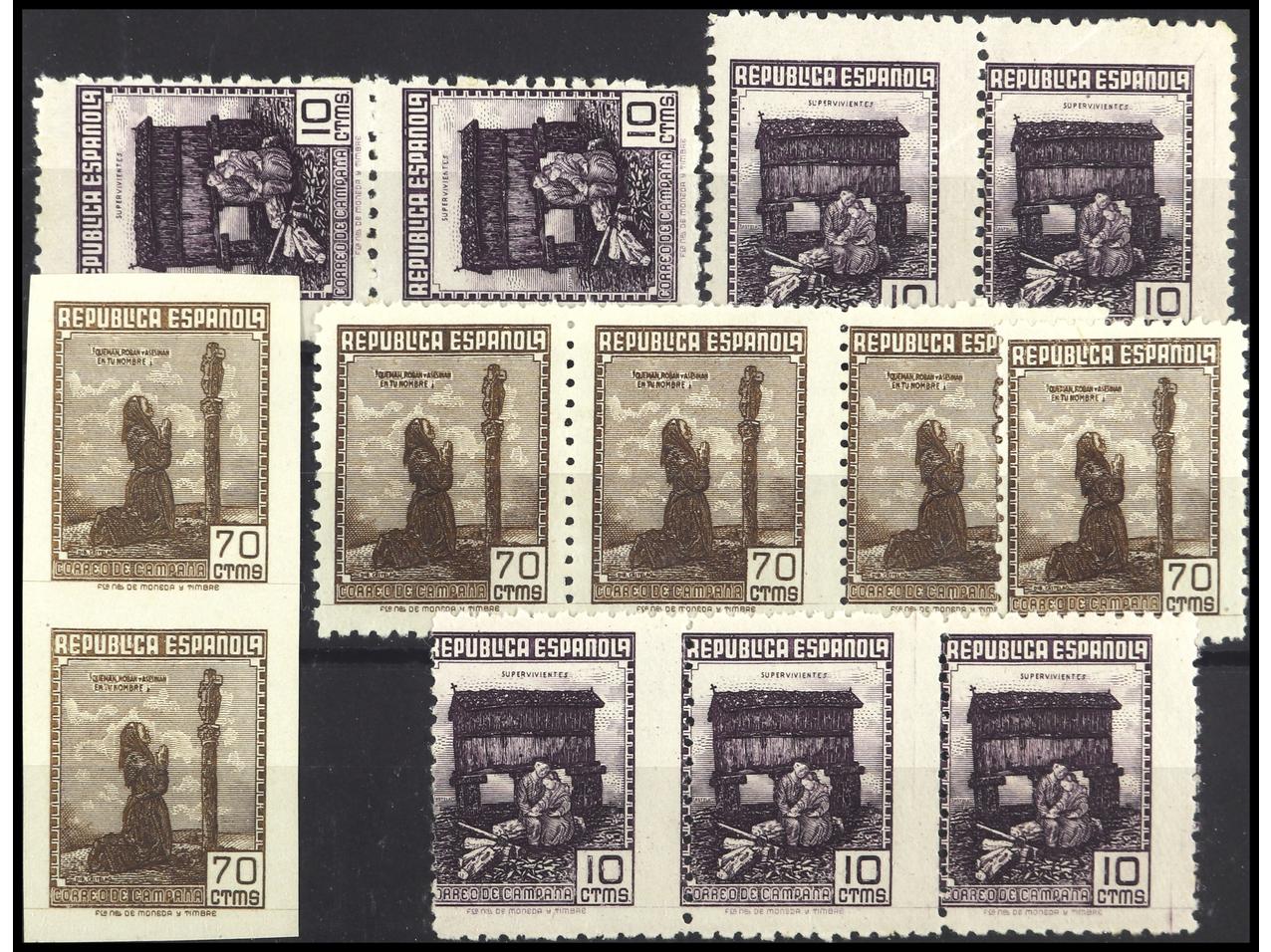 ESPAÑA. Ficha con sellos no expendidos. Los de 70 cts. sin goma. OCASIÓN. Ed.NE47(7), 52(4) y 52s(5). Cat. 390€. (Image1)